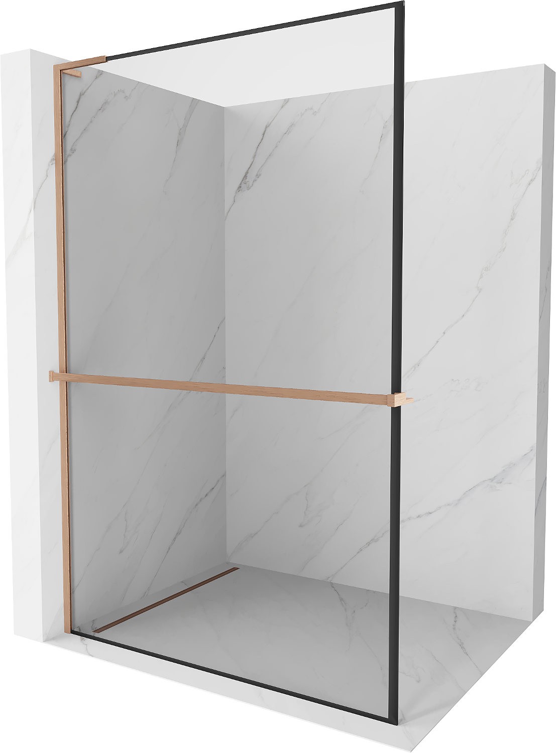 Mexen Kioto+ L perete de duș cu raft Walk-in 80 x 200 cm, cadru negru, cupru periat - 800-080-123-65-70