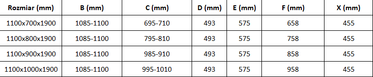 Dimensiune: 110x90 cm (uși 110 cm, perete 90 cm)