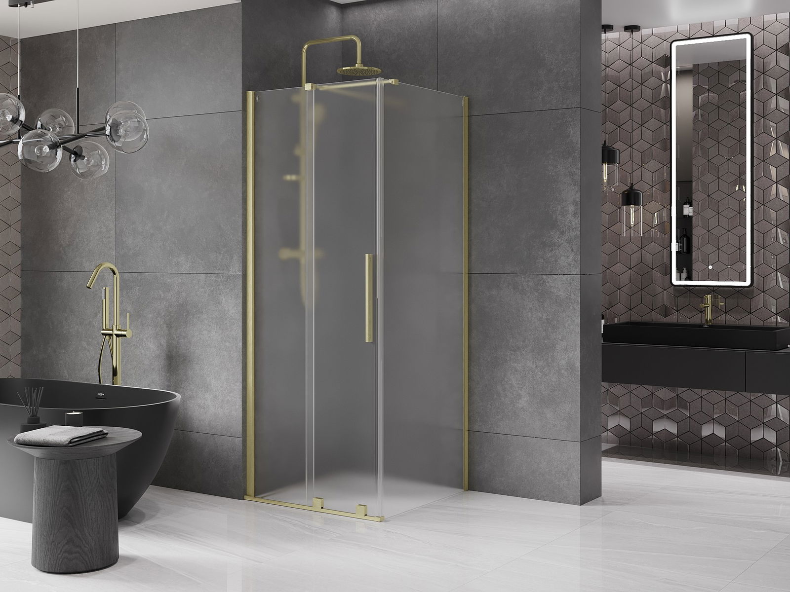 Mânerul practic și confortabil este realizat din oțel inoxidabil. Forma modernă, combinată cu un finisaj asortat cu culoarea profilelor, conferă ansamblului un aspect modern și elegant, subliniind estetica fiecărei băi.