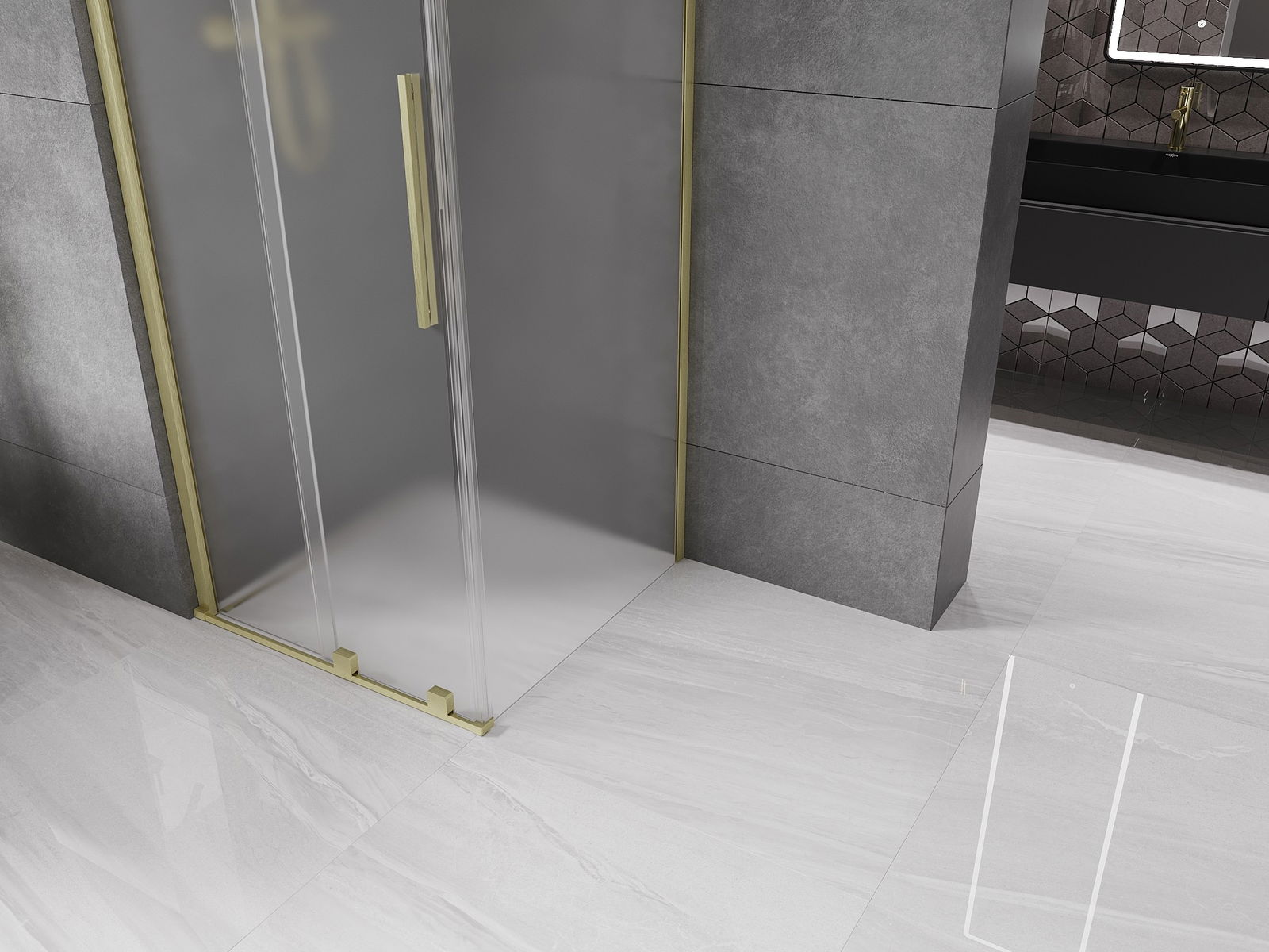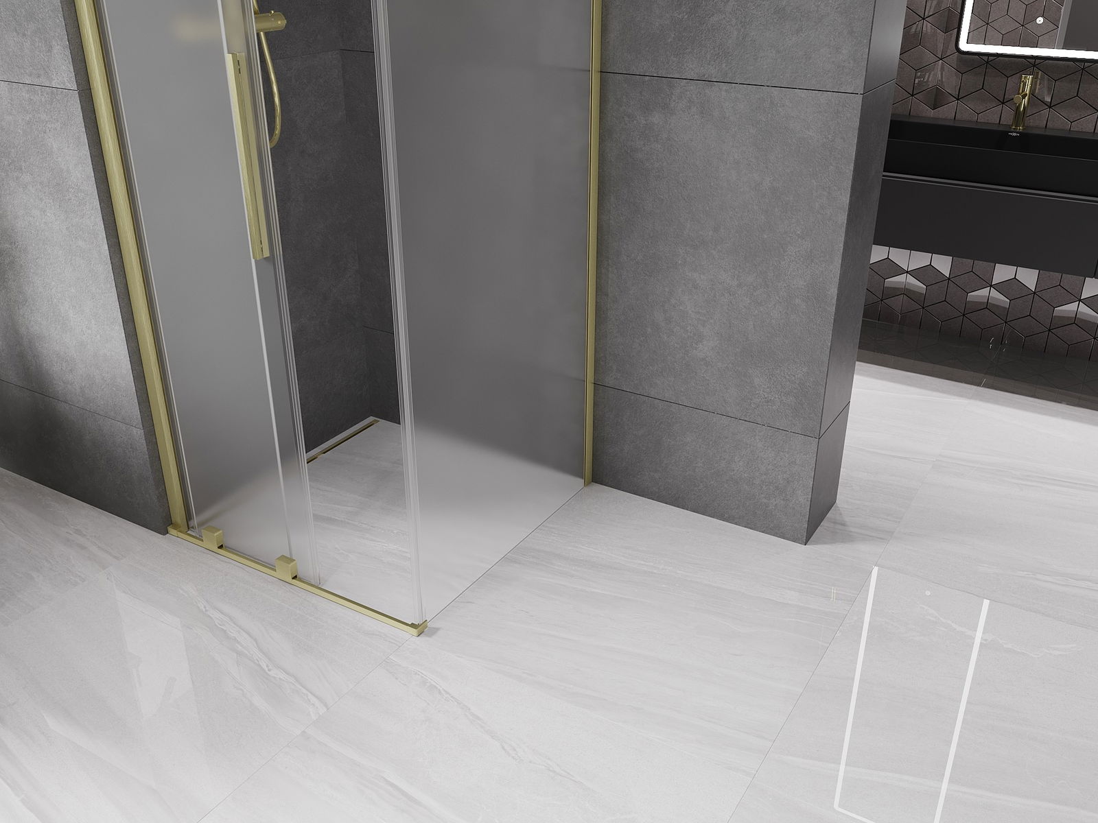 Mexen Velar cabină de duș glisantă 110 x 110 cm, mat, auriu periat - 871-110-110-31-55