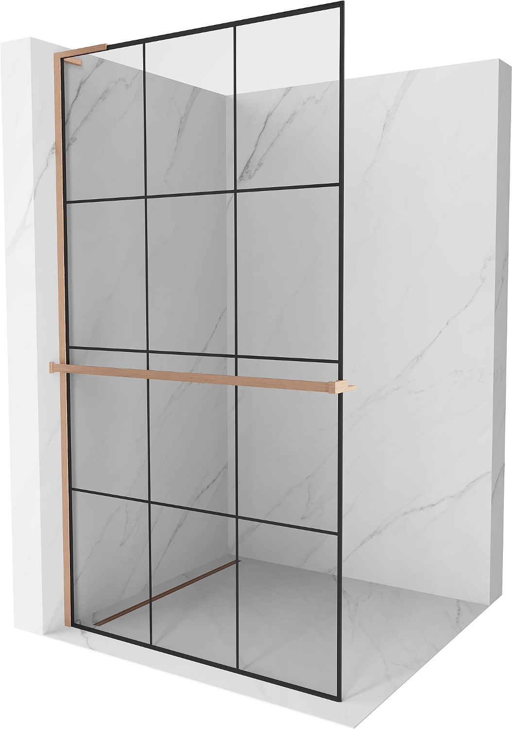 Mexen Kioto+ L perete de duș cu raft Walk-in 120 x 200 cm, grilaj negru, cupru periat - 800-120-123-65-77