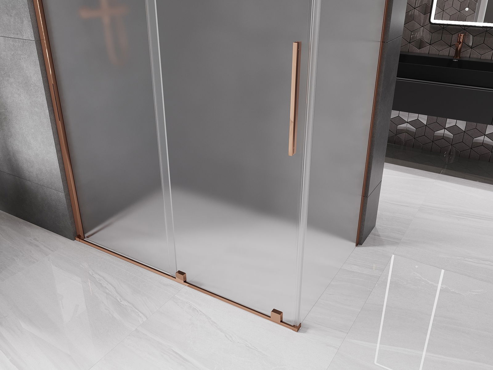 Mexen Velar cabină de duș glisantă 130 x 70 cm, înghețat, aur roz - 871-130-070-31-60