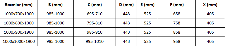 Dimensiune: 100x90 cm (ușă 100 cm, perete 90 cm)