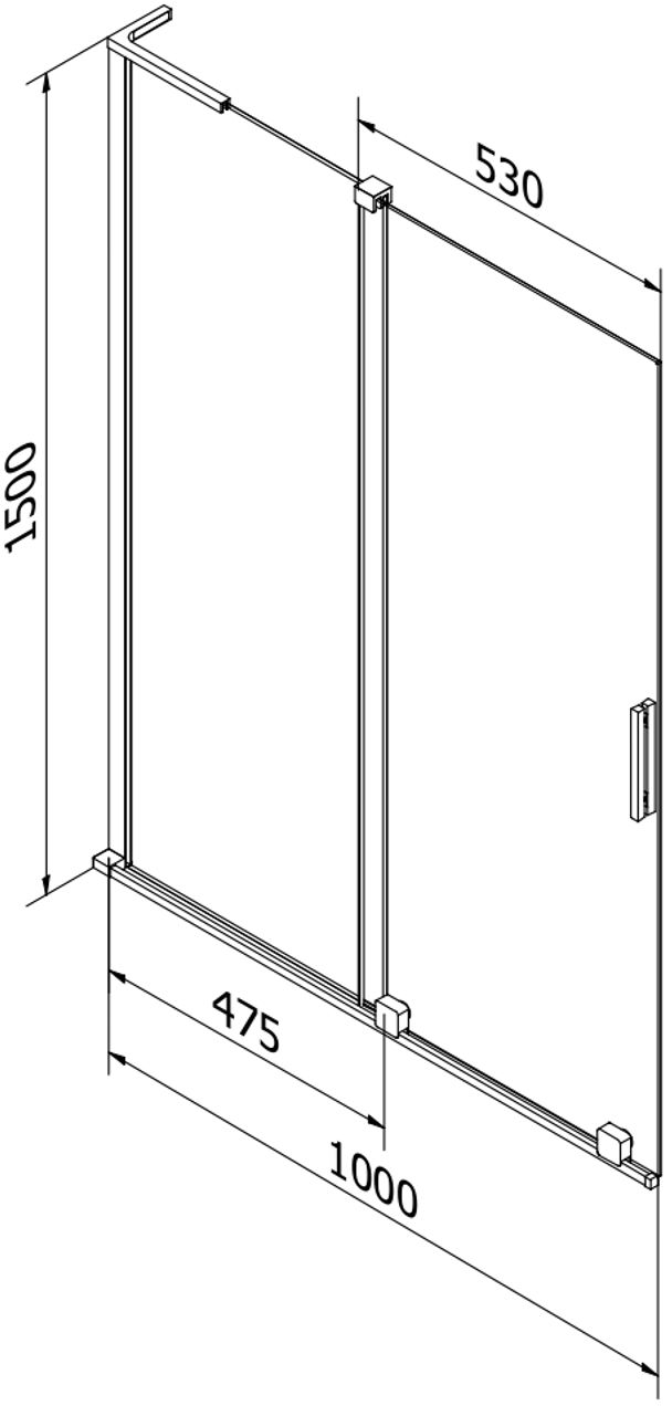 Mexen Velar L paravan de cadă 2-pliabil glisant 100 x 150 cm, transparent, alb - 896-100-003-01-20