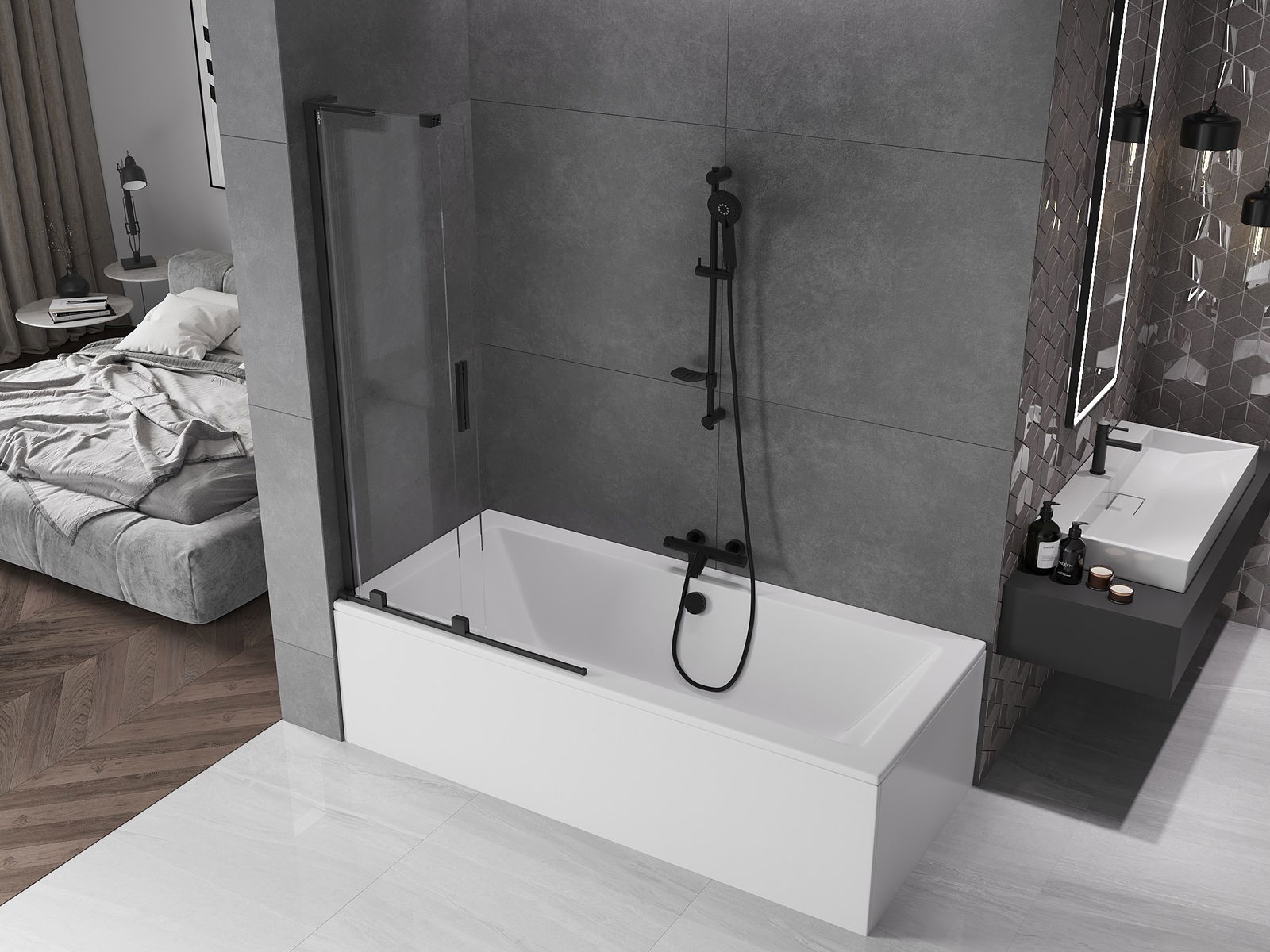 Mexen Velar L paravan cadă de baie cu 2 uși glisante 90 x 150 cm, transparent, negru - 896-090-003-01-70