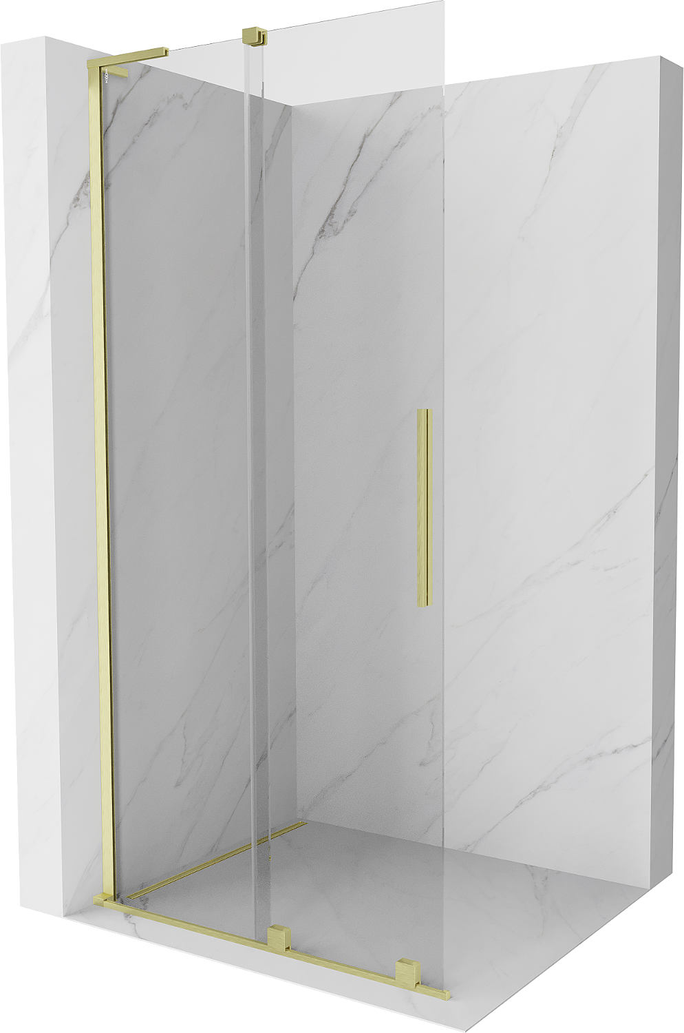 Mexen Velar L perete de duș glisant Walk-in 110 x 200 cm, transparent 8 mm, auriu periat - 871-110-003-03-55