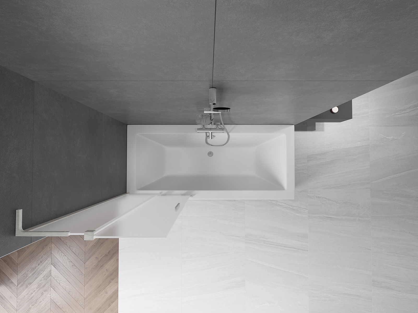 O protecție eficientă împotriva vărsării apei în timpul băii. Paravanul are garnituri care se potrivesc perfect cu suprafața de sticlă și marginea căzii. O soluție funcțională care asigură siguranță și întreținere ușoară a curățeniei.