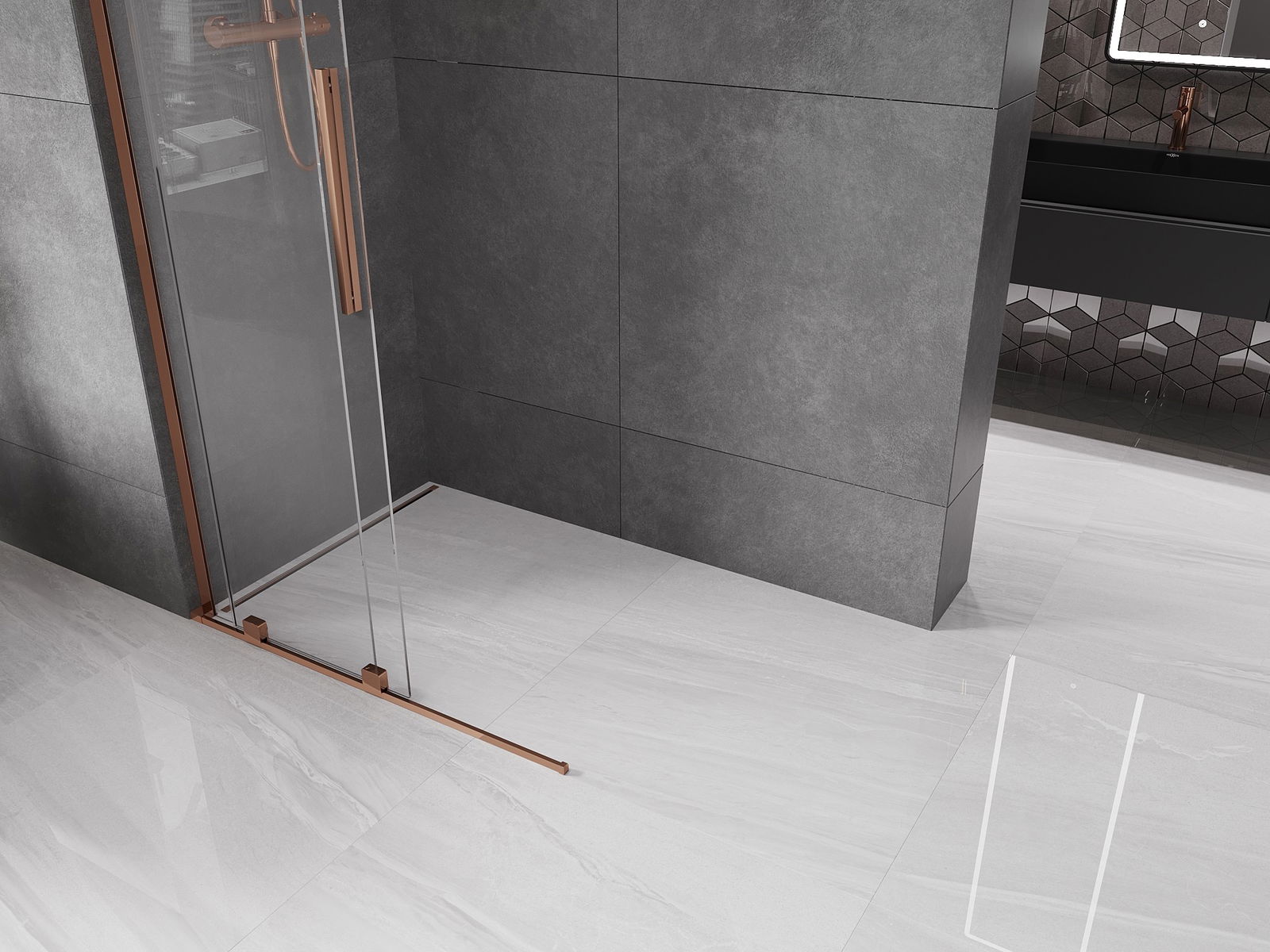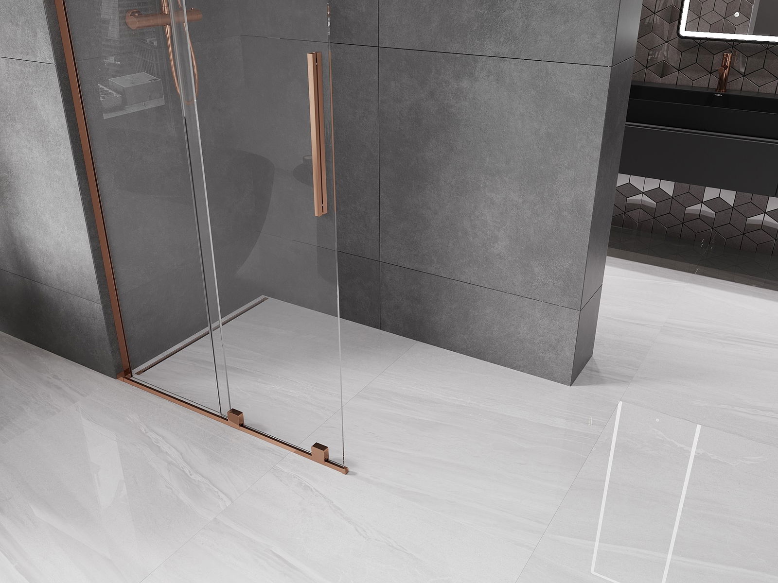 Mexen Velar L perete de duș glisant Walk-in 100 x 200 cm, transparent 8 mm, aur roz - 871-100-003-03-60