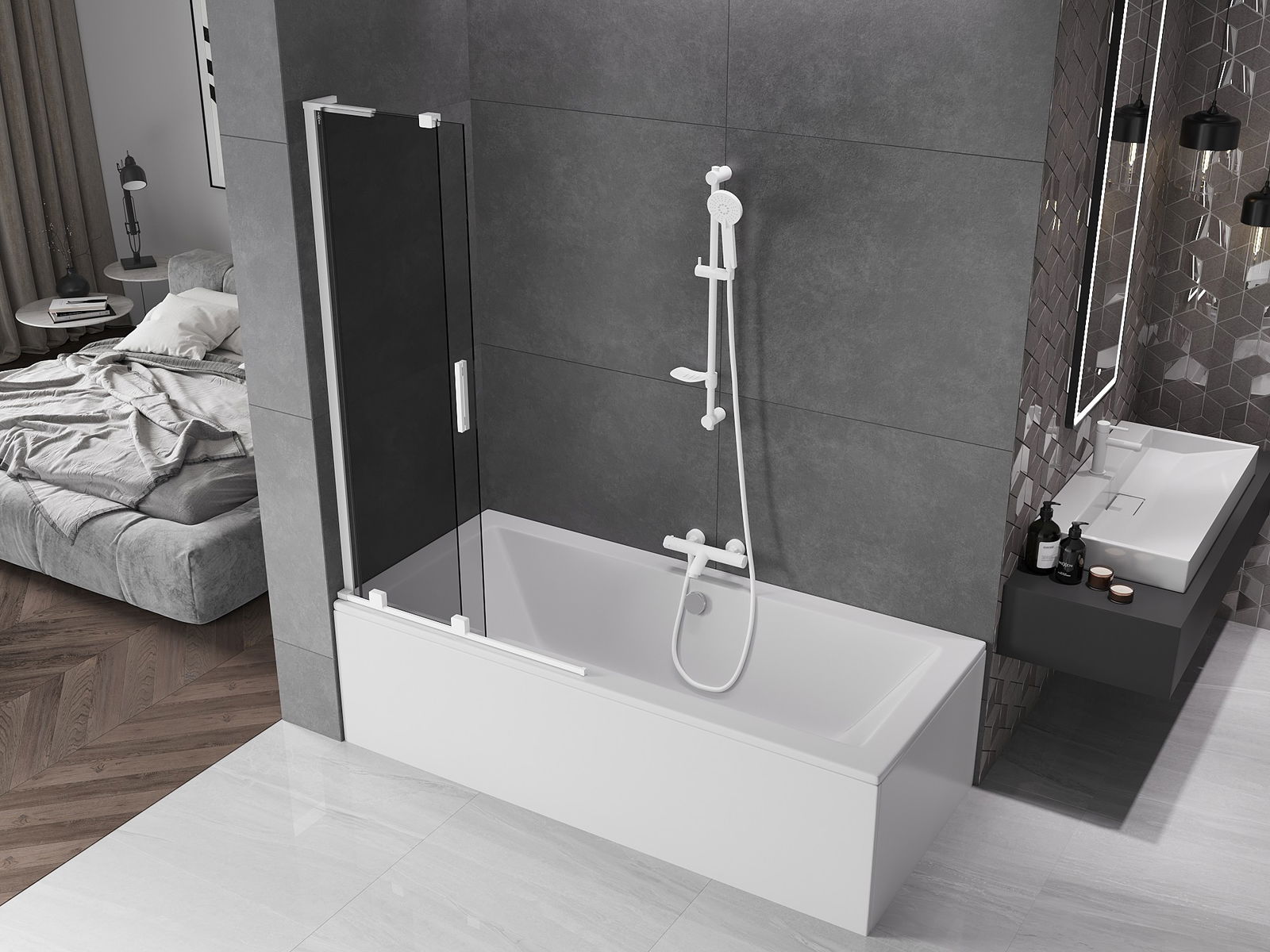 O protecție eficientă împotriva vărsării apei în timpul băii. Paravanul are garnituri care se potrivesc perfect cu suprafața de sticlă și marginea căzii. O soluție funcțională care asigură siguranță și întreținere ușoară a curățeniei.