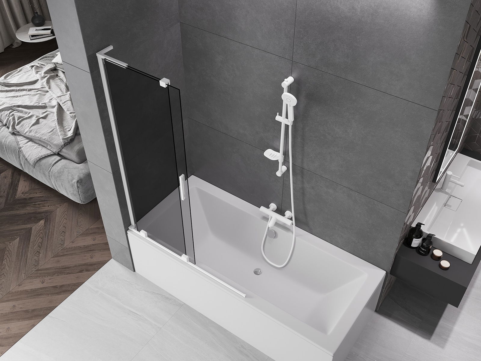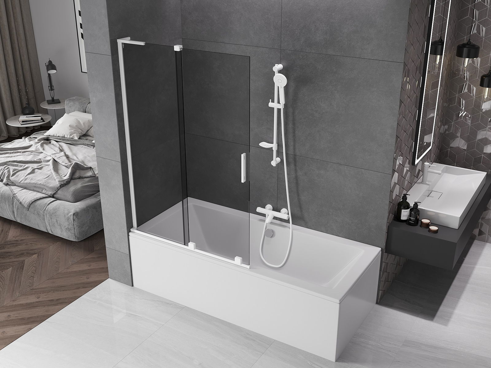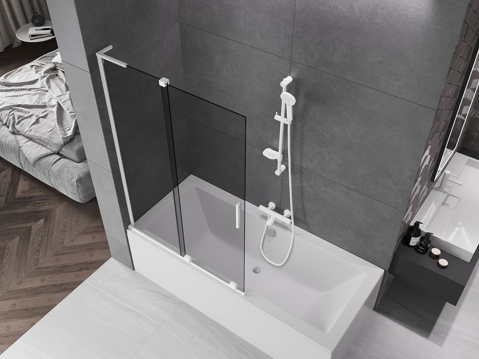 Mexen Velar L paravan de cadă cu 2 uși glisante 110 x 150 cm, grafit, alb - 896-110-003-41-20