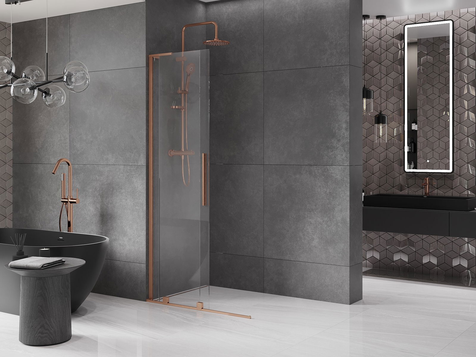 Mexen Velar L Perete de duș culisant Walk-in 120 x 200 cm, transparent 8 mm, cupru periat - 871-120-003-03-65