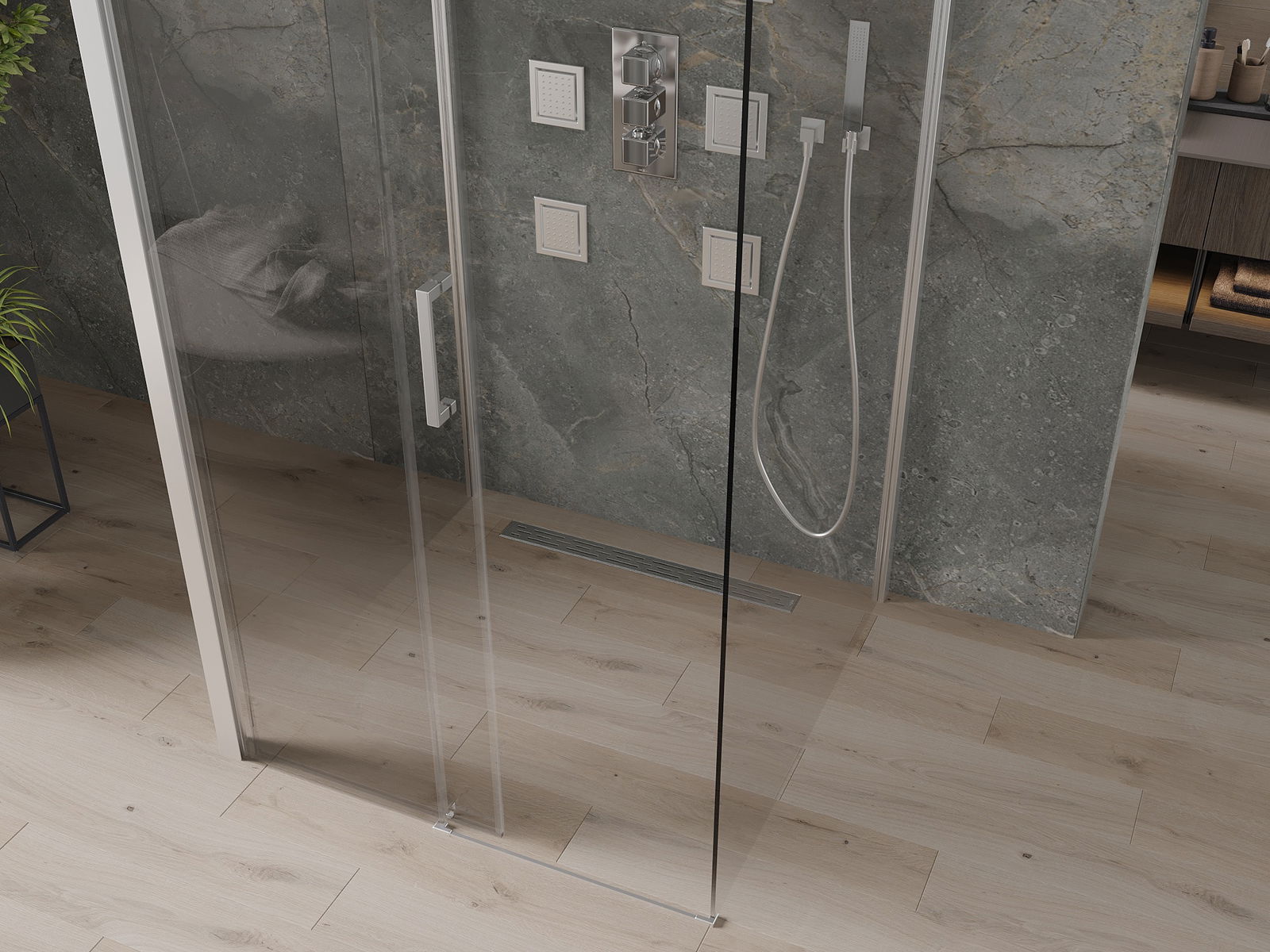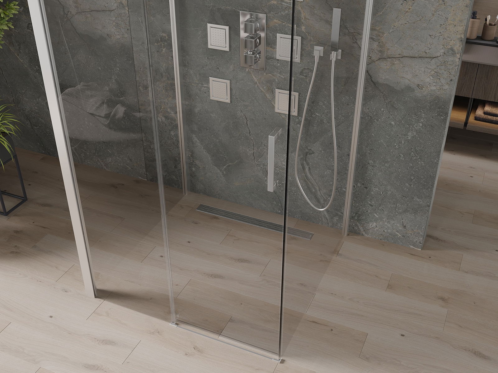 În funcție de nevoile dvs., produsul poate fi montat atât pe tava de duș, cât și direct pe podea. Metoda de montare universală vă permite să adaptați produsul la diferite tipuri de băi și să configurați spațiul.
