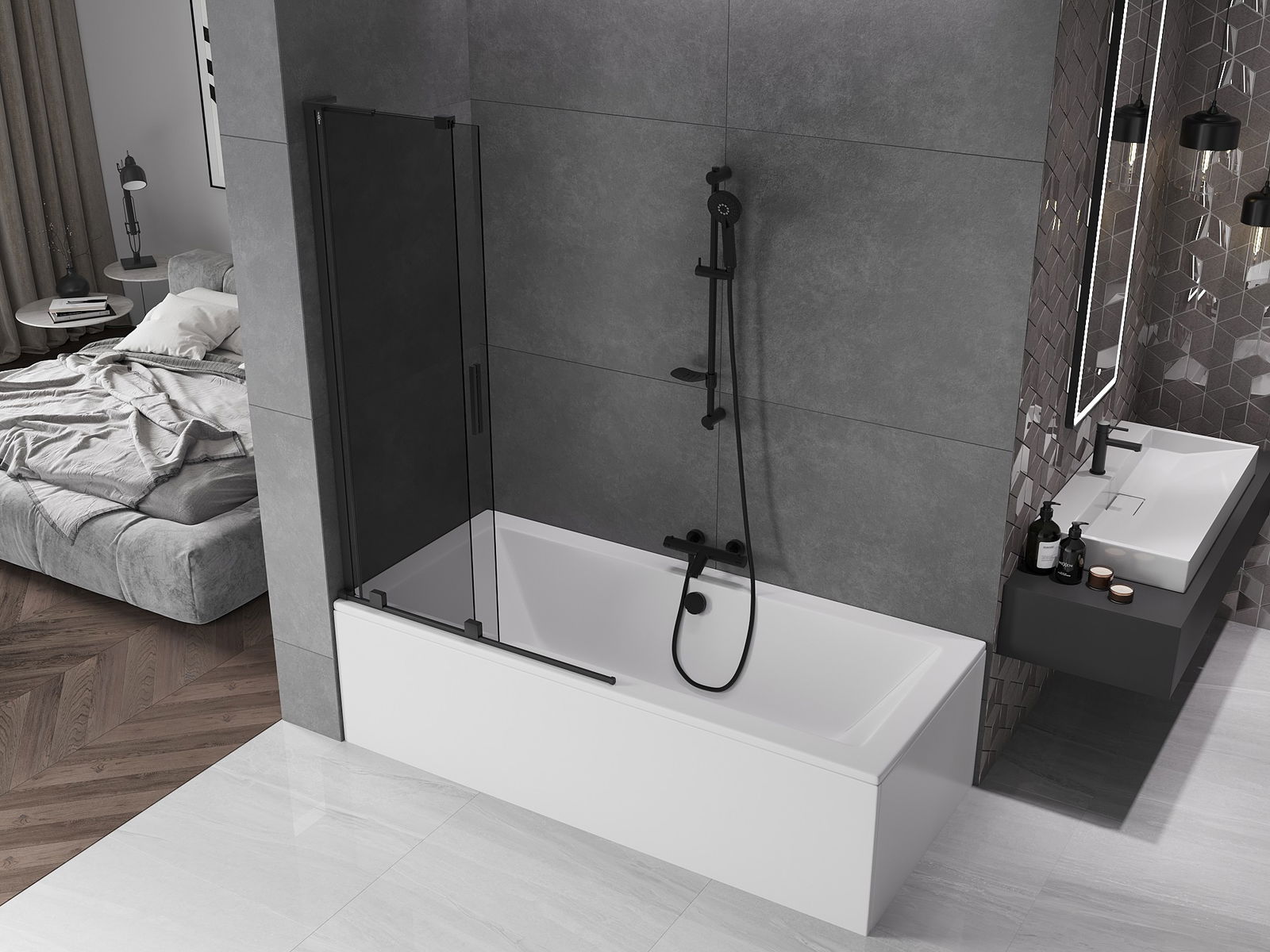 Mexen Velar L panou de cadă cu 2 uși glisante 100 x 150 cm, grafit, negru - 896-100-003-41-70