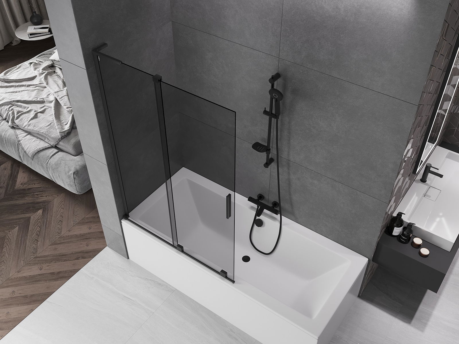 Mexen Velar L paravan de cadă cu 2 panouri glisante 110 x 150 cm, grafit, negru - 896-110-003-41-70