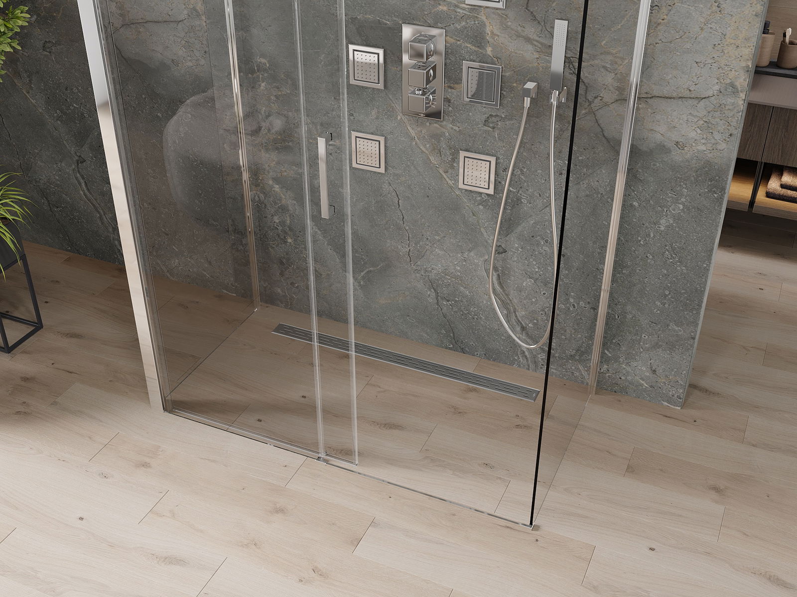 Datorită utilizării unui sistem de montare universală, ușile de duș pot fi montate pe dreapta sau la stânga, în funcție de nevoile dvs. Datorită acestui fapt, puteți proiecta cu ușurință un duș adaptat spațiului din baie.