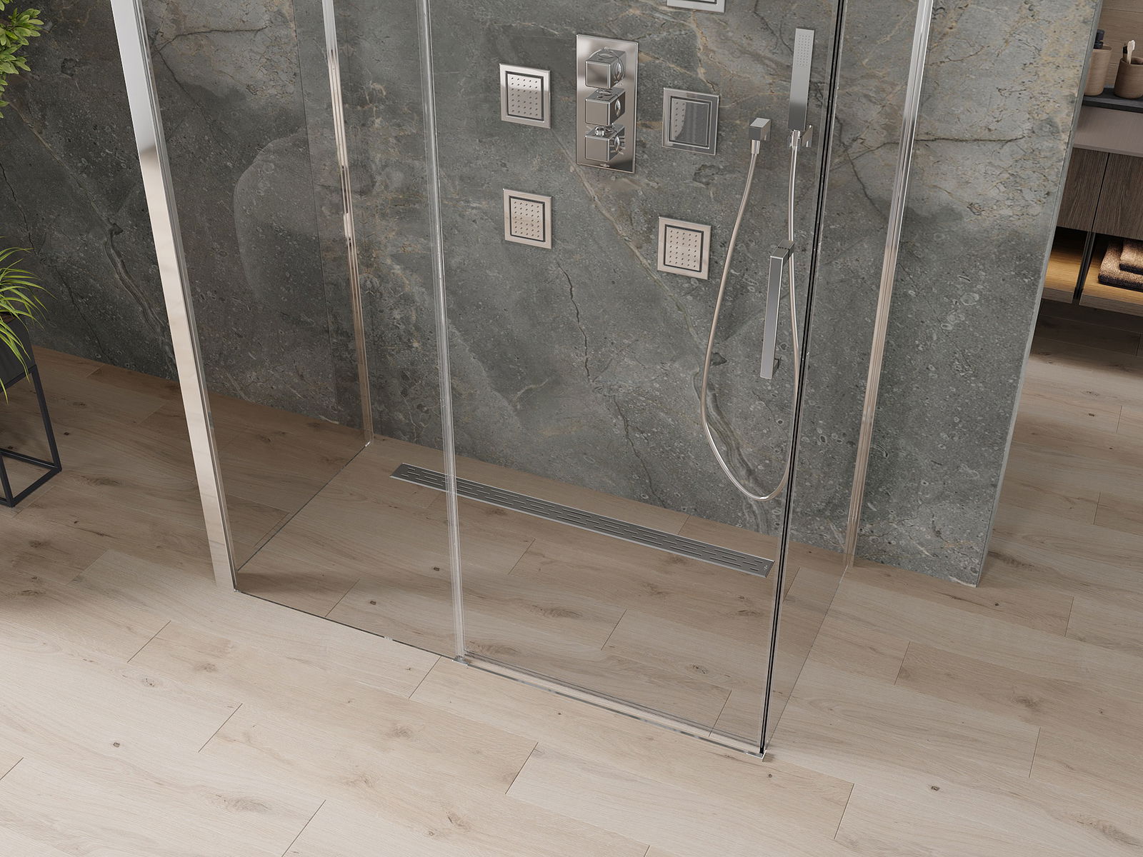 În funcție de nevoile dvs., produsul poate fi montat atât pe tava de duș, cât și direct pe podea. Metoda de montare universală vă permite să adaptați produsul la diferite tipuri de băi și să configurați spațiul.