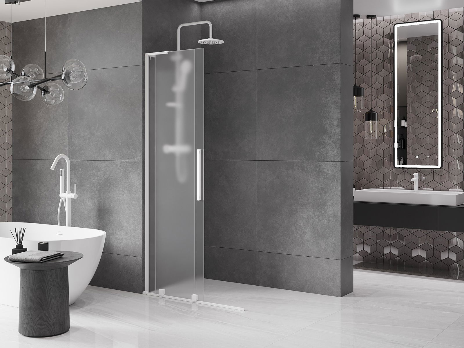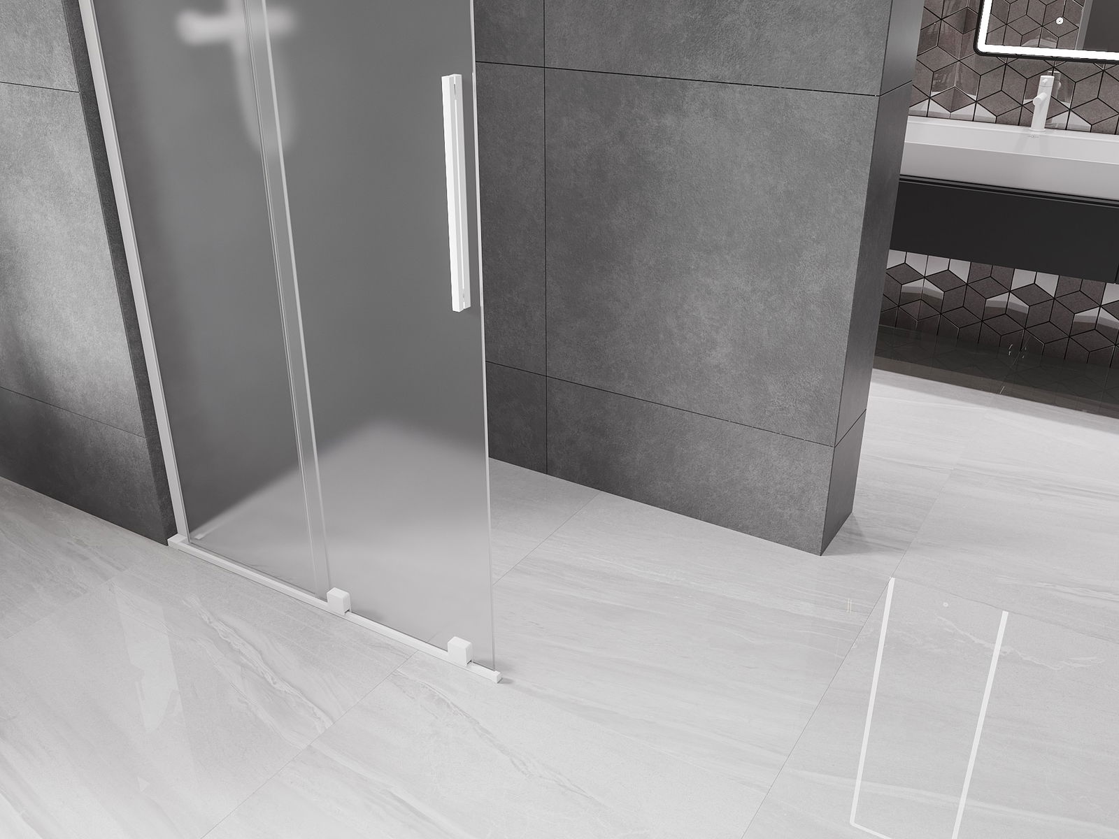 Mânerul practic și confortabil este realizat din oțel inoxidabil. Forma modernă, combinată cu un finisaj asortat cu culoarea profilelor, conferă ansamblului un aspect modern și elegant, subliniind estetica fiecărei băi.