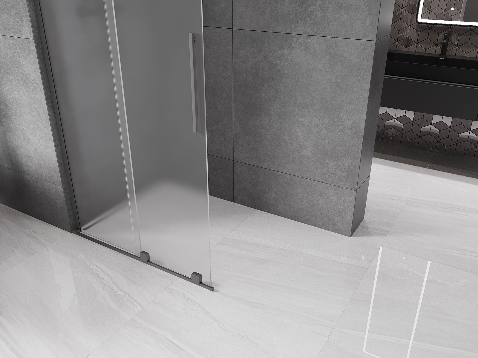 Mexen Velar L perete de duș glisant Walk-in 90 x 200 cm, înghețat 8 mm, metal pistol - 871-090-003-33-95