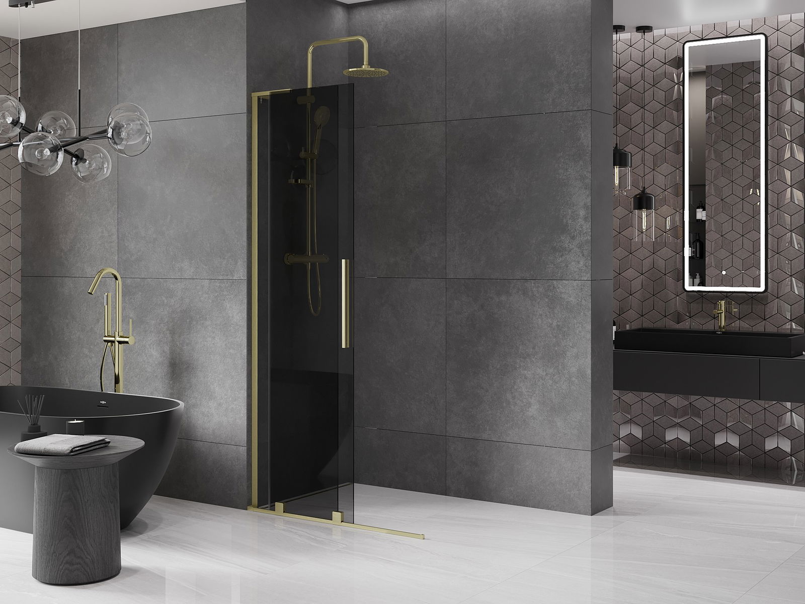 Mexen Velar L perete de duș glisant Walk-in 120 x 200 cm, grafit 8 mm, auriu periat - 871-120-003-43-55