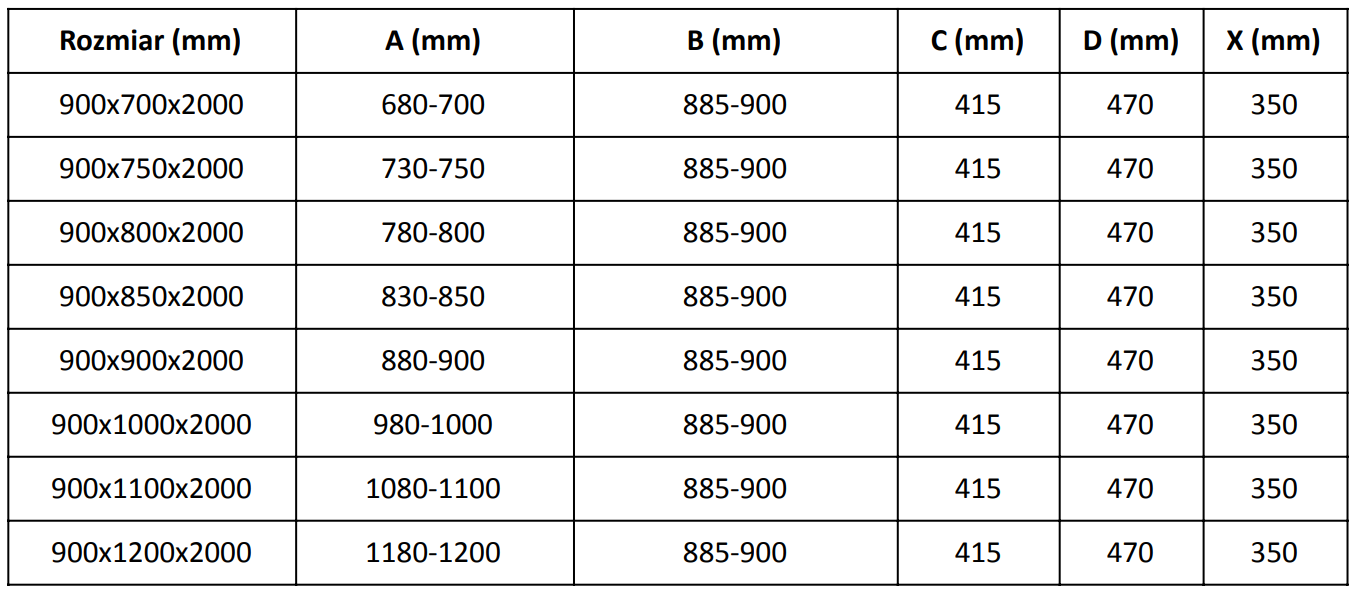 Dimensiune: 90x100 cm (uși 90 cm, perete 100 cm)