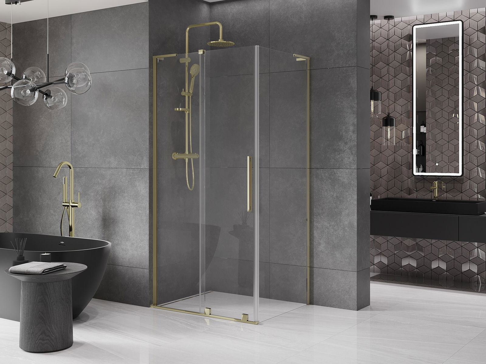 Mânerul practic și confortabil este realizat din oțel inoxidabil. Forma modernă, combinată cu un finisaj asortat cu culoarea profilelor, conferă ansamblului un aspect modern și elegant, subliniind estetica fiecărei băi.