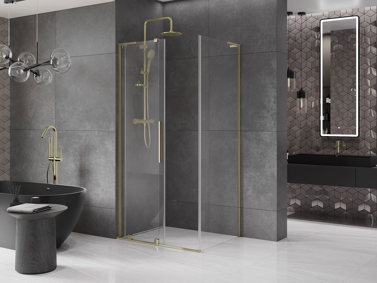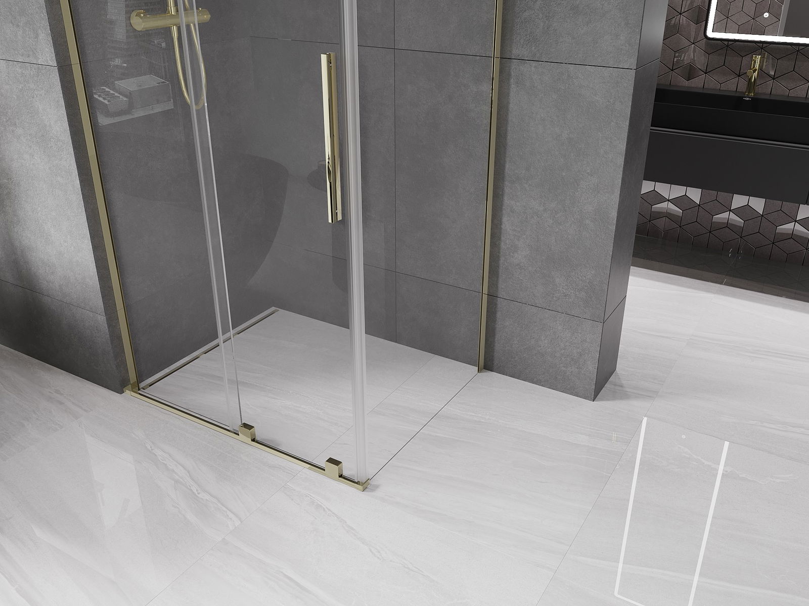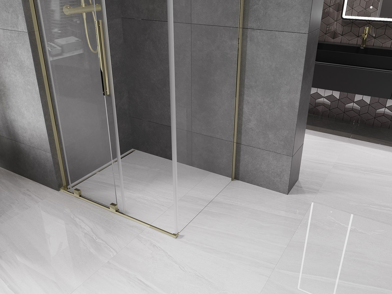 Mexen Velar L cabină de duș glisantă 90 x 100 cm, transparentă, aurie - 871-090-100-03-50