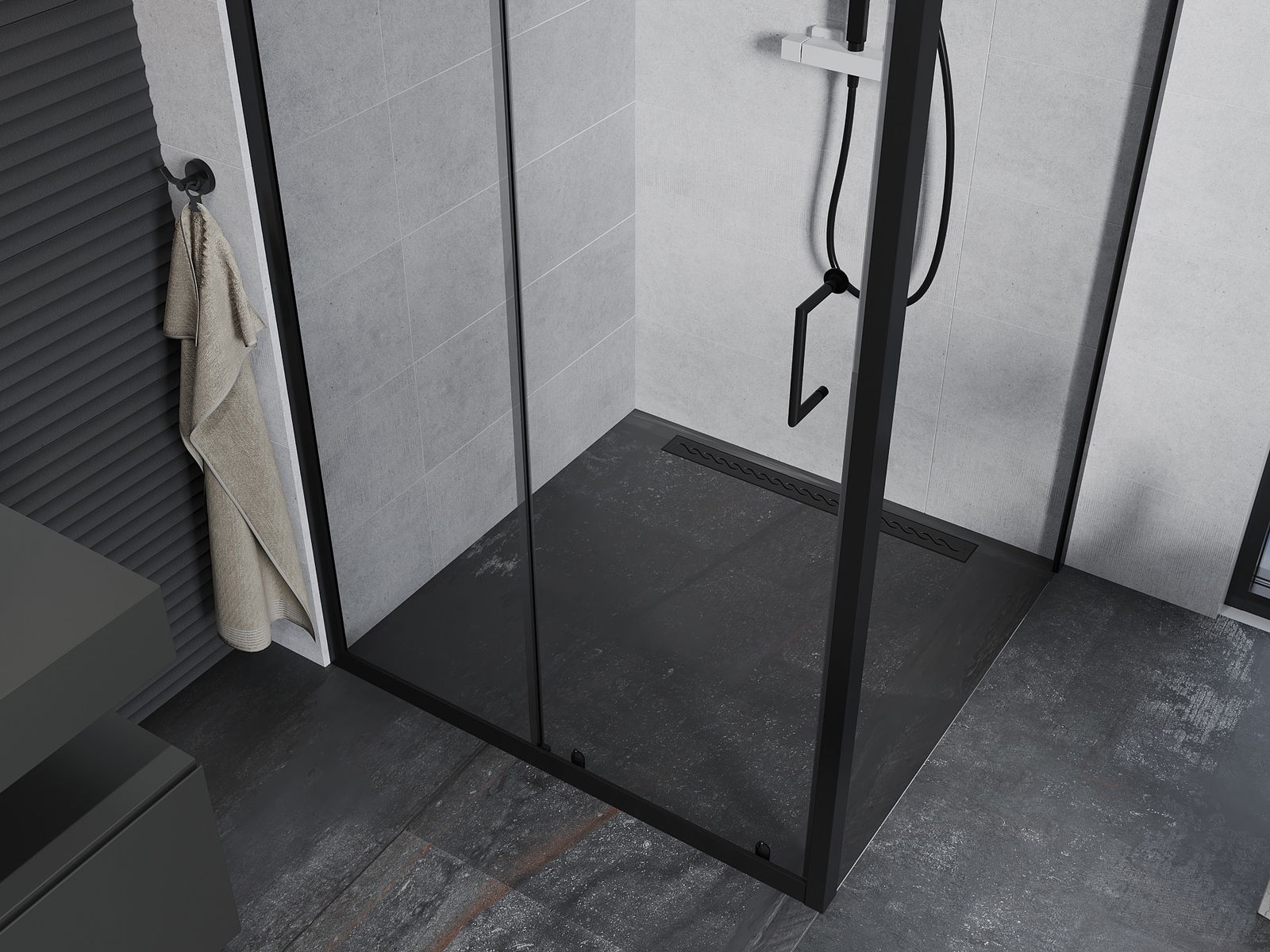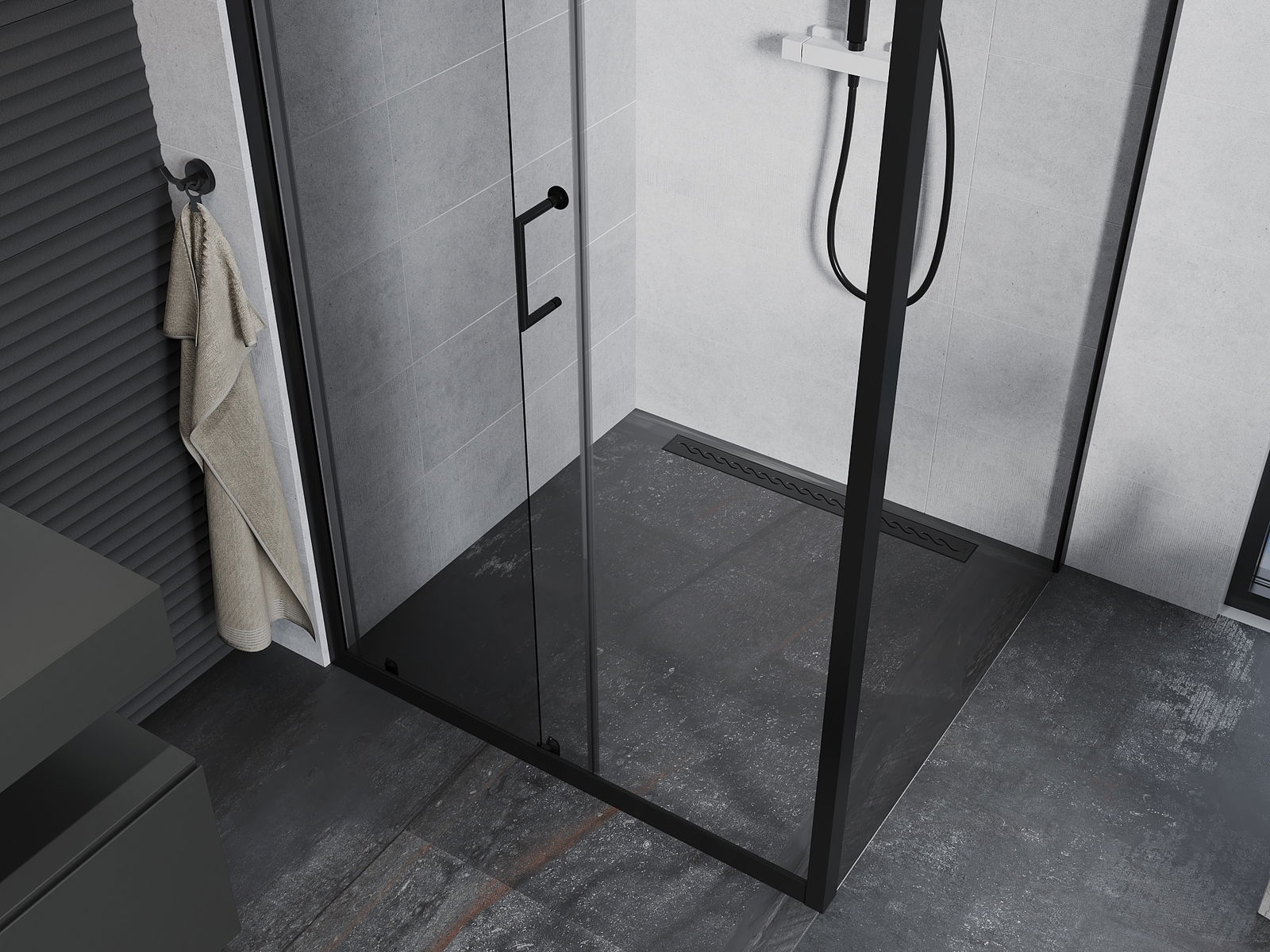 Mexen Apia cabina de duș glisantă 90 x 90 cm, transparentă, neagră - 840-090-090-70-00