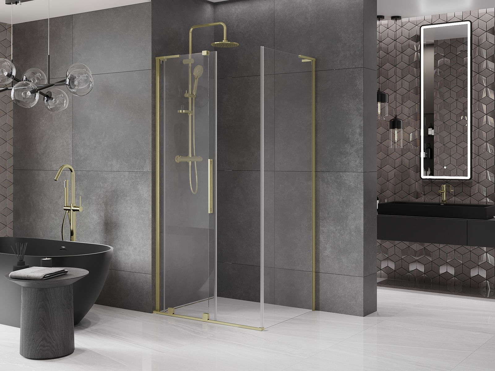 Mânerul practic și confortabil este realizat din oțel inoxidabil. Forma modernă, combinată cu un finisaj asortat cu culoarea profilelor, conferă ansamblului un aspect modern și elegant, subliniind estetica fiecărei băi.