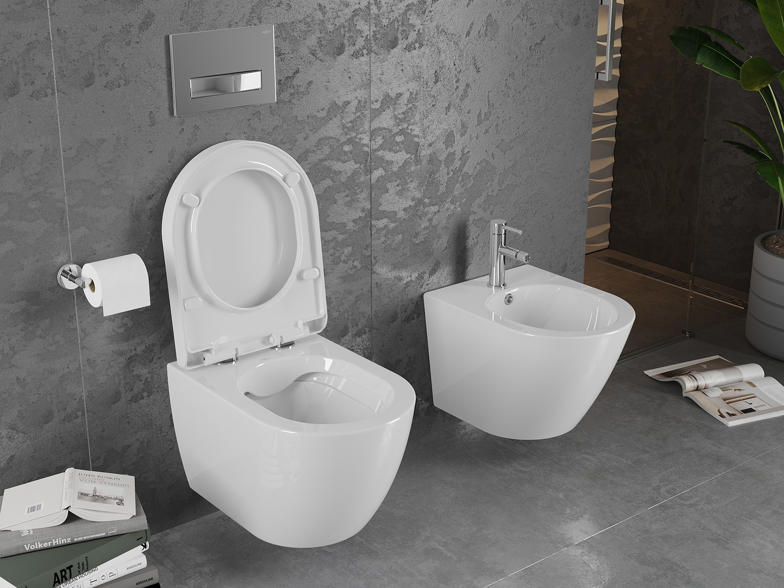 Utilizarea unui cadru încastrat pentru montajul ceramicii permite suspendarea acesteia. În acest fel, putem obține nu doar un aspect modern al băii, ci și o mărire a spațiului și o întreținere mai ușoară a curățeniei.