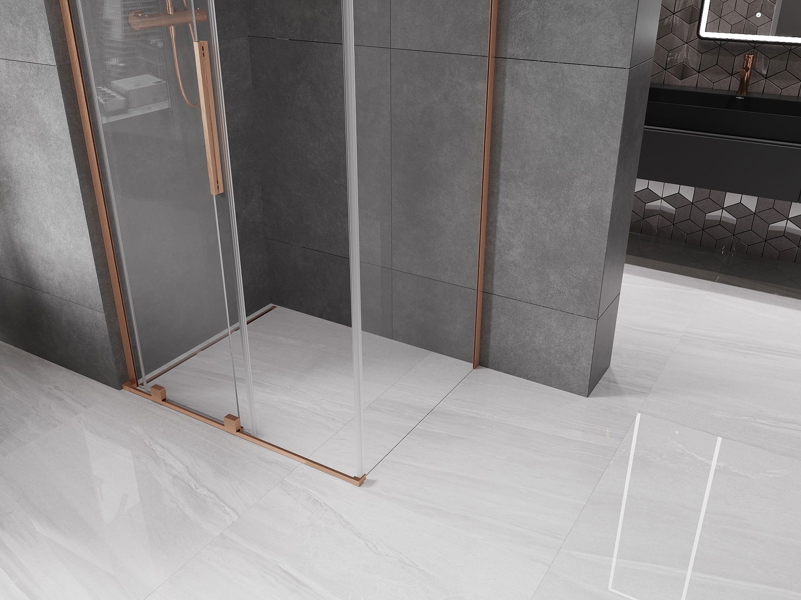 Mexen Velar L cabină de duș extensibilă 90 x 80 cm, transparentă, cupru periat - 871-090-080-03-65