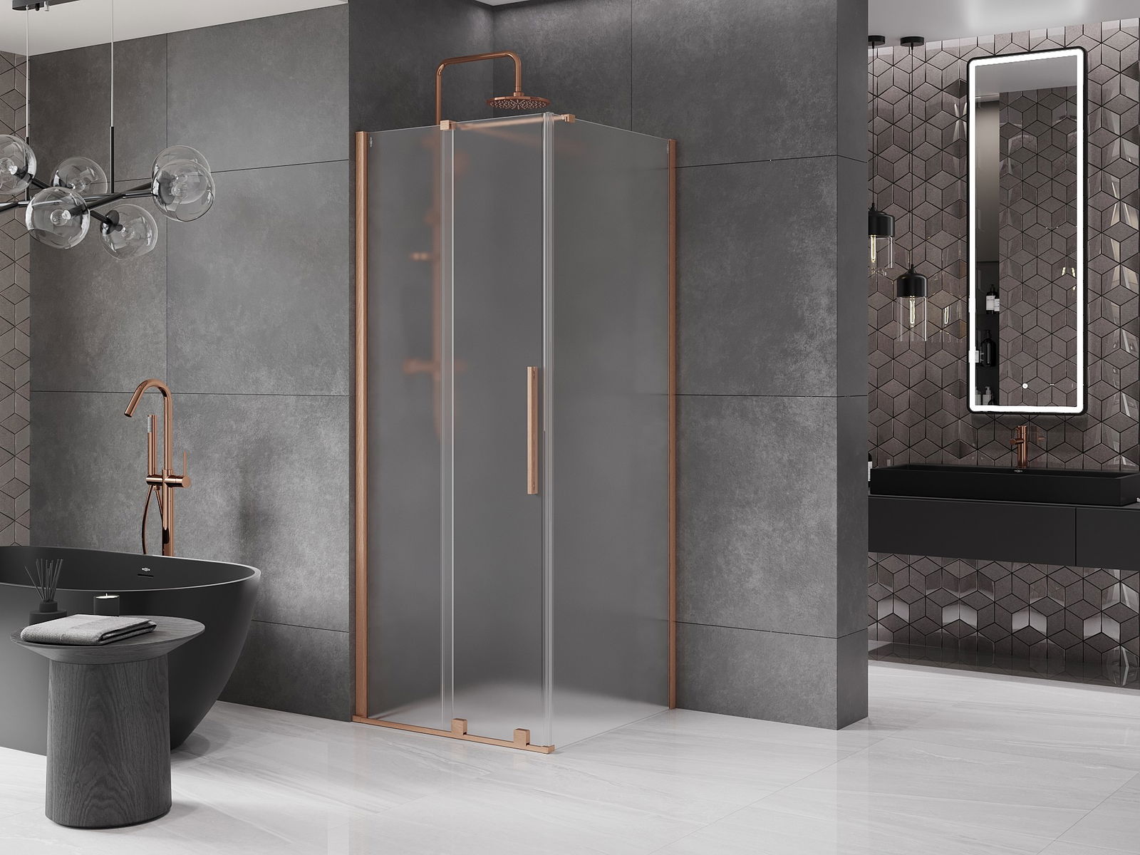 Mexen Velar cabină de duș glisantă 110 x 110 cm, mată, cupru periat - 871-110-110-31-65
