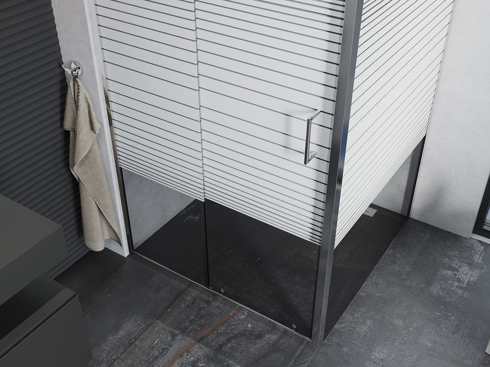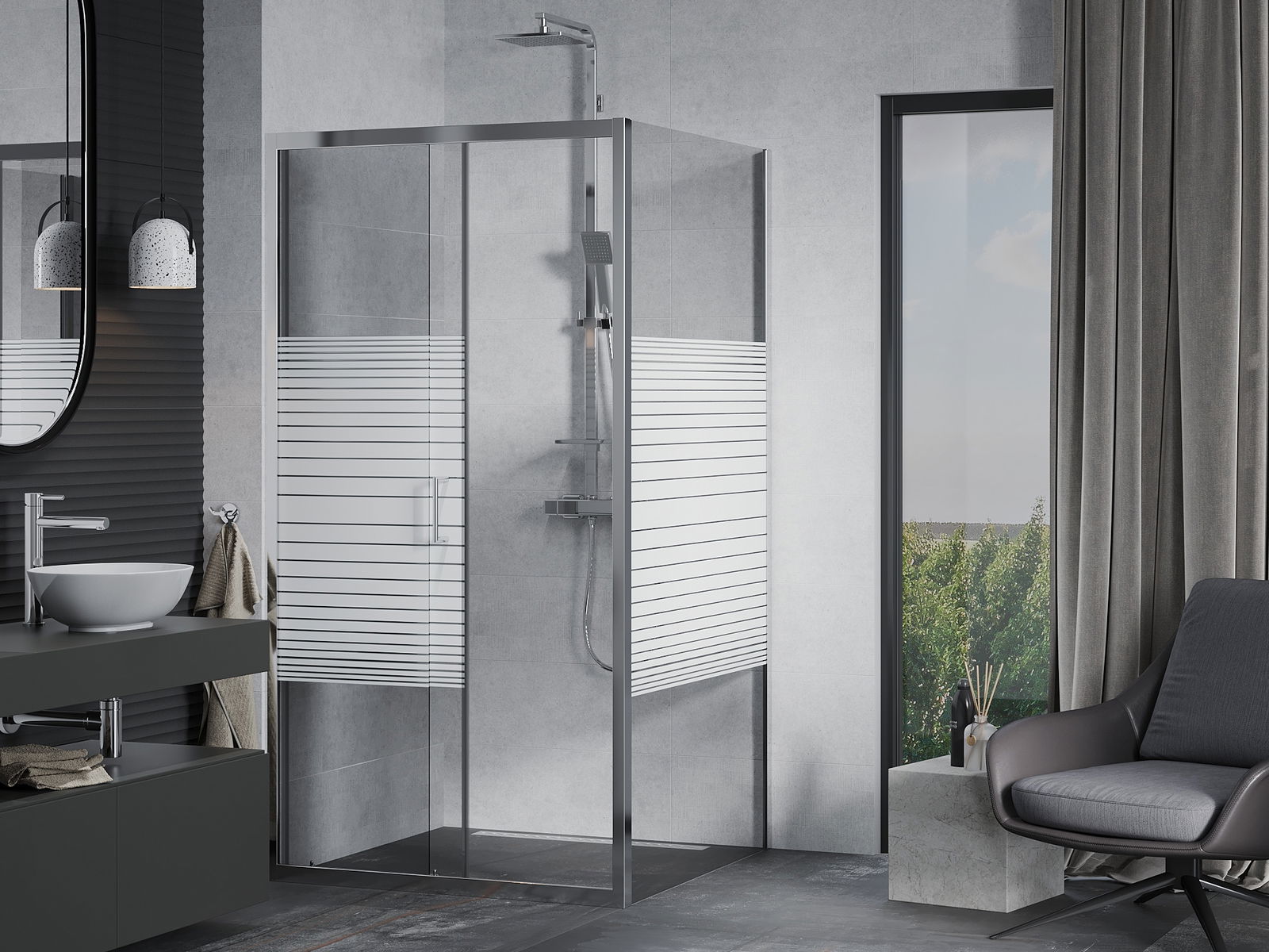 Cabină de duș culisantă Mexen Apia 100 x 100 cm, benzi albe, crom - 840-100-100-01-20
