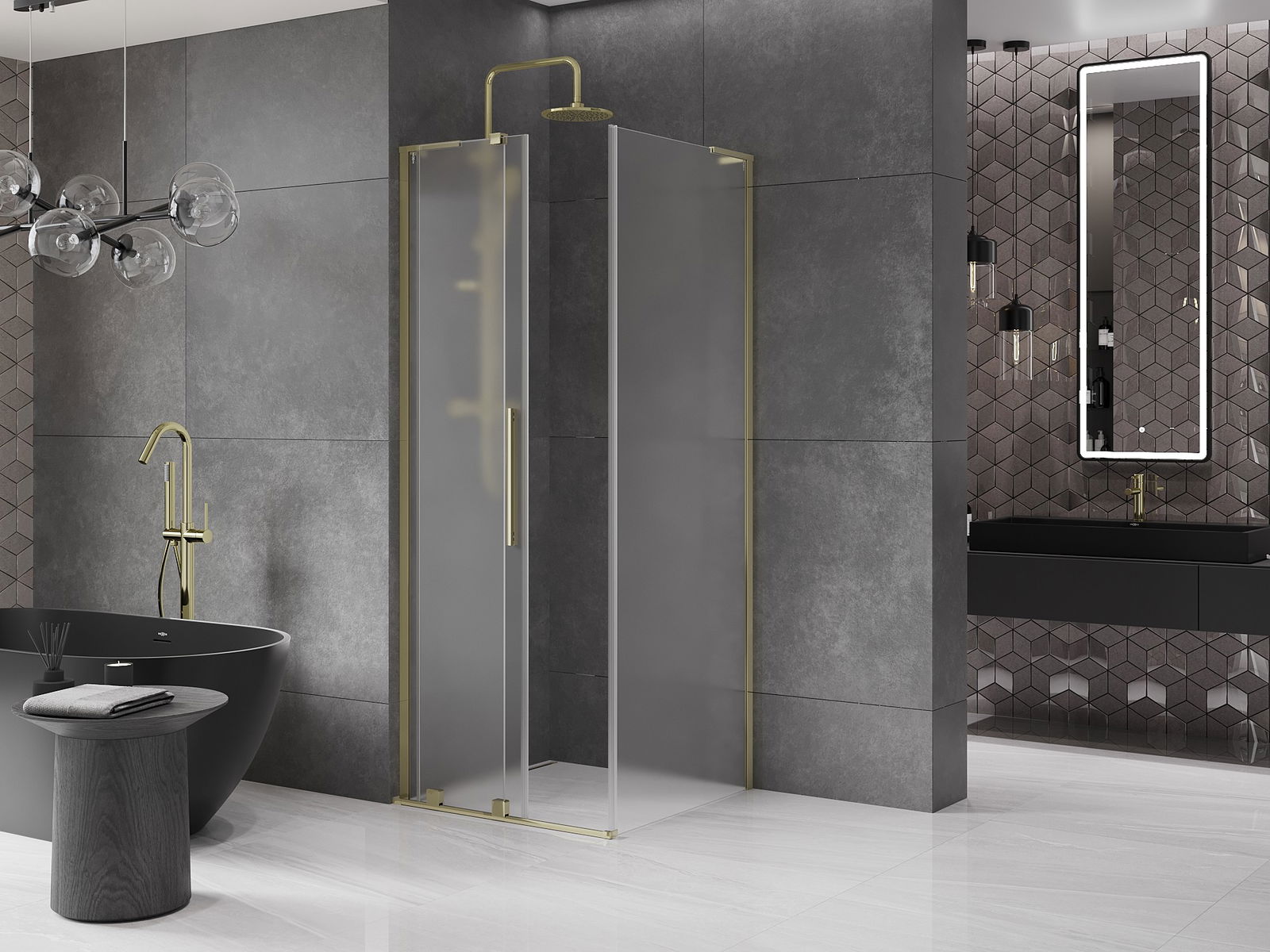 Mexen Velar L cabină de duș culisantă 90 x 90 cm, înghețat, auriu - 871-090-090-33-50
