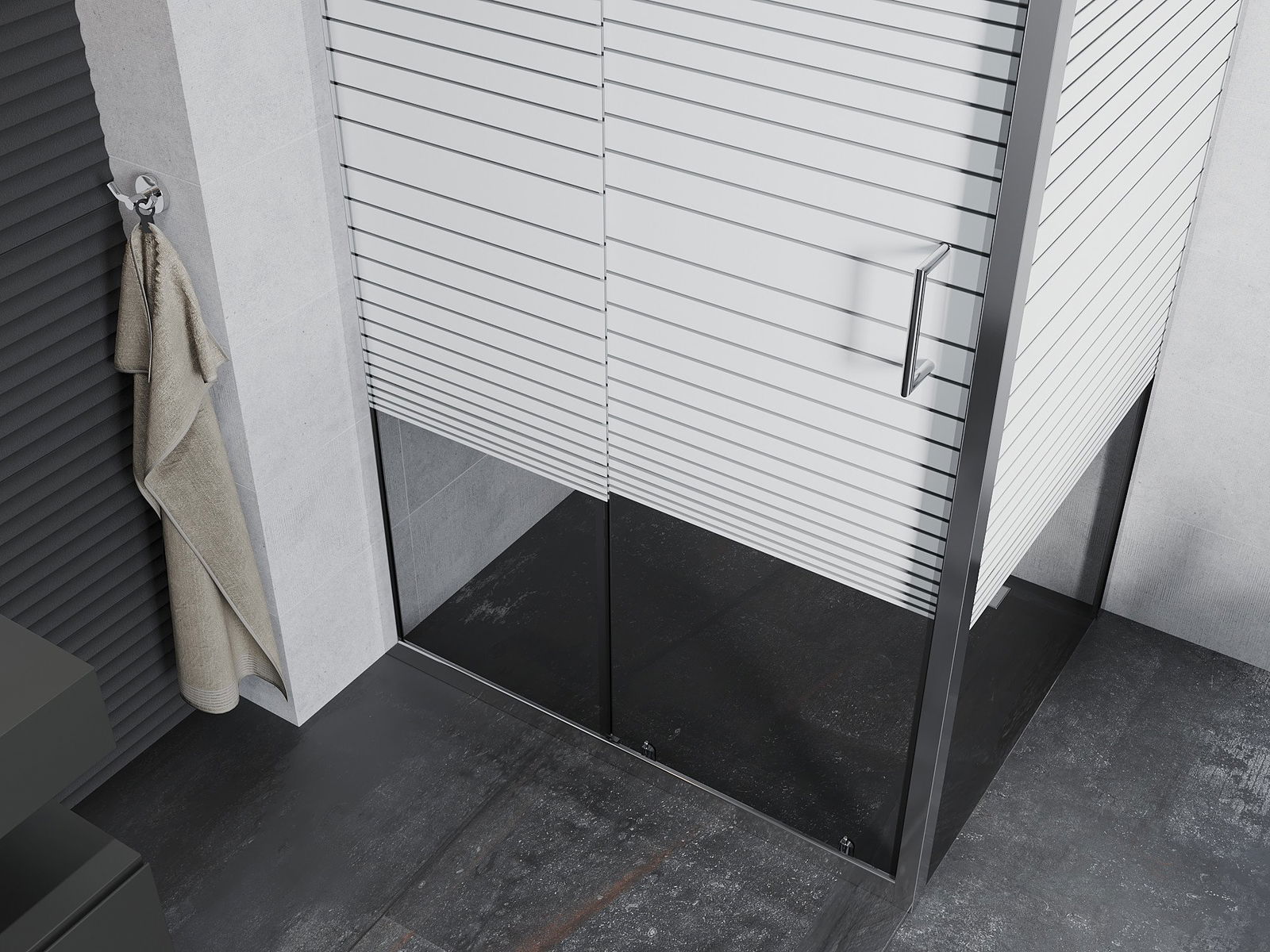 Mânerul la îndemână și confortabil era din metal durabil și rezistent. Forma la modă combinată cu un finisaj adaptat culorii profilurilor oferă întregului aspect modern și elegant, subliniind estetica fiecărei băi.