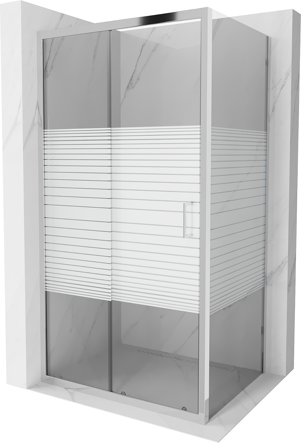 Mexen Apia cabina de duș cu uși glisante 130 x 90 cm, benzi albe, crom - 840-130-090-01-20