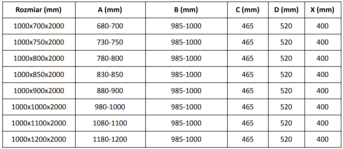Dimensiune: 100x70 cm (uși 100 cm, perete 70 cm)