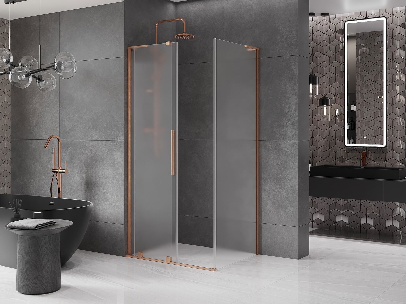 Mexen Velar L cabină de duș glisantă 100 x 70 cm, geam mat, cupru periat - 871-100-070-33-65