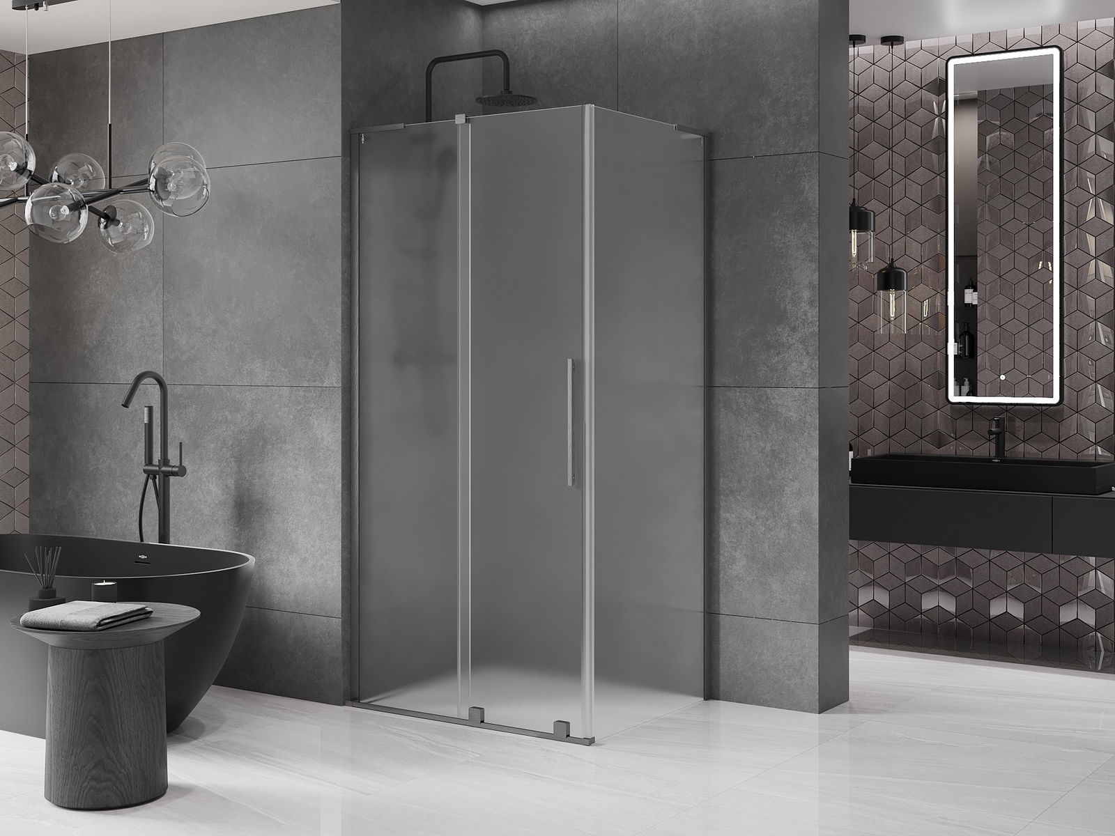Mânerul practic și confortabil este realizat din oțel inoxidabil. Forma modernă, combinată cu un finisaj asortat cu culoarea profilelor, conferă ansamblului un aspect modern și elegant, subliniind estetica fiecărei băi.