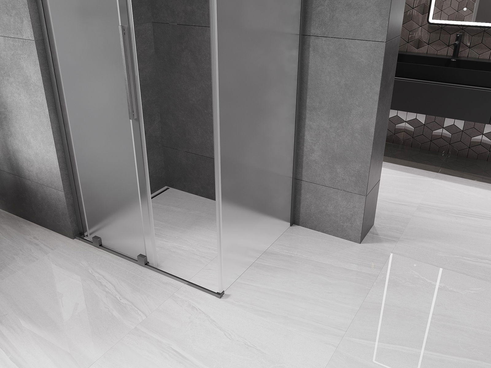 Mexen Velar L cabină de duș glisantă 90 x 70 cm, mată, gri armă periat - 871-090-070-33-66