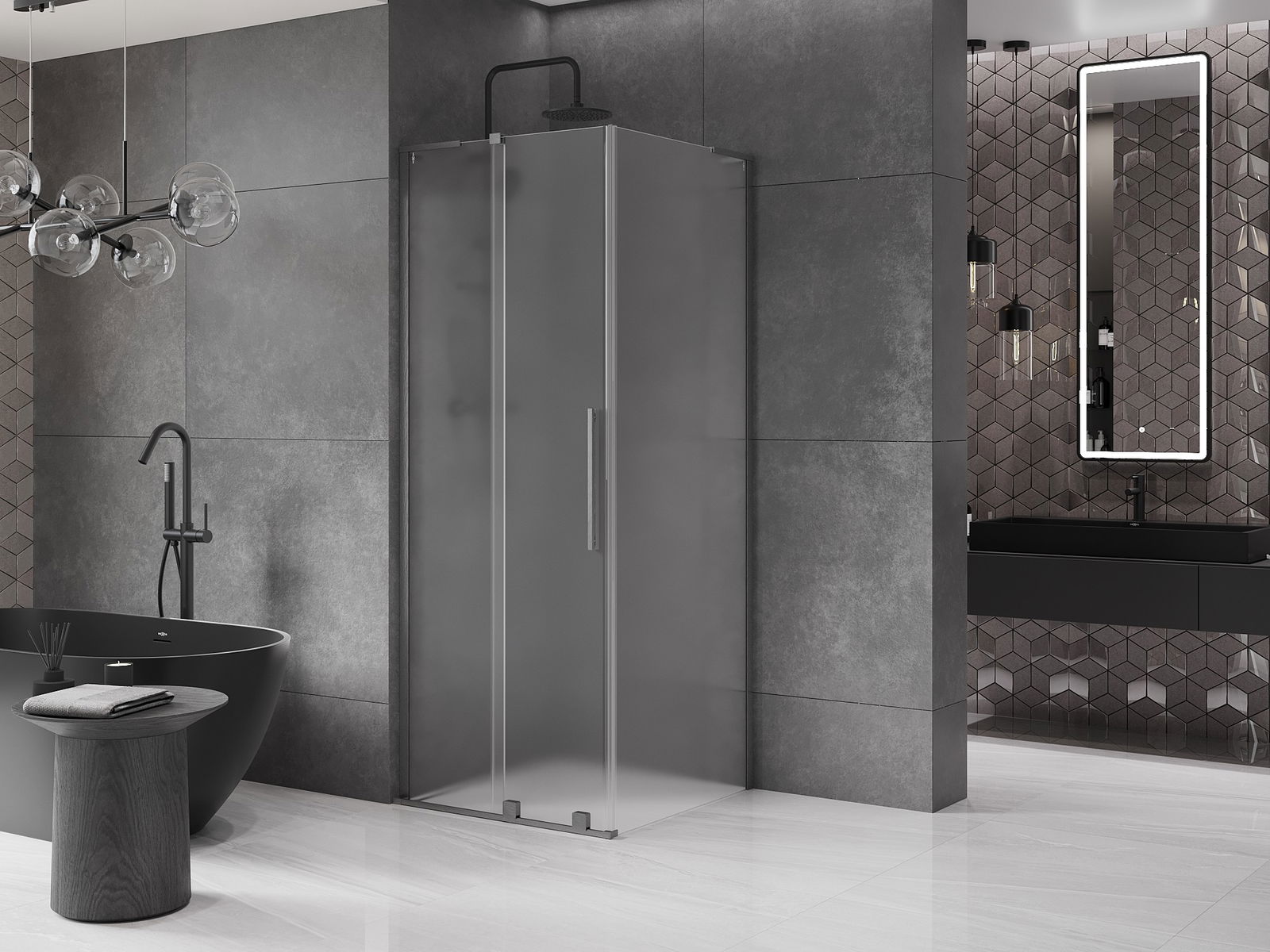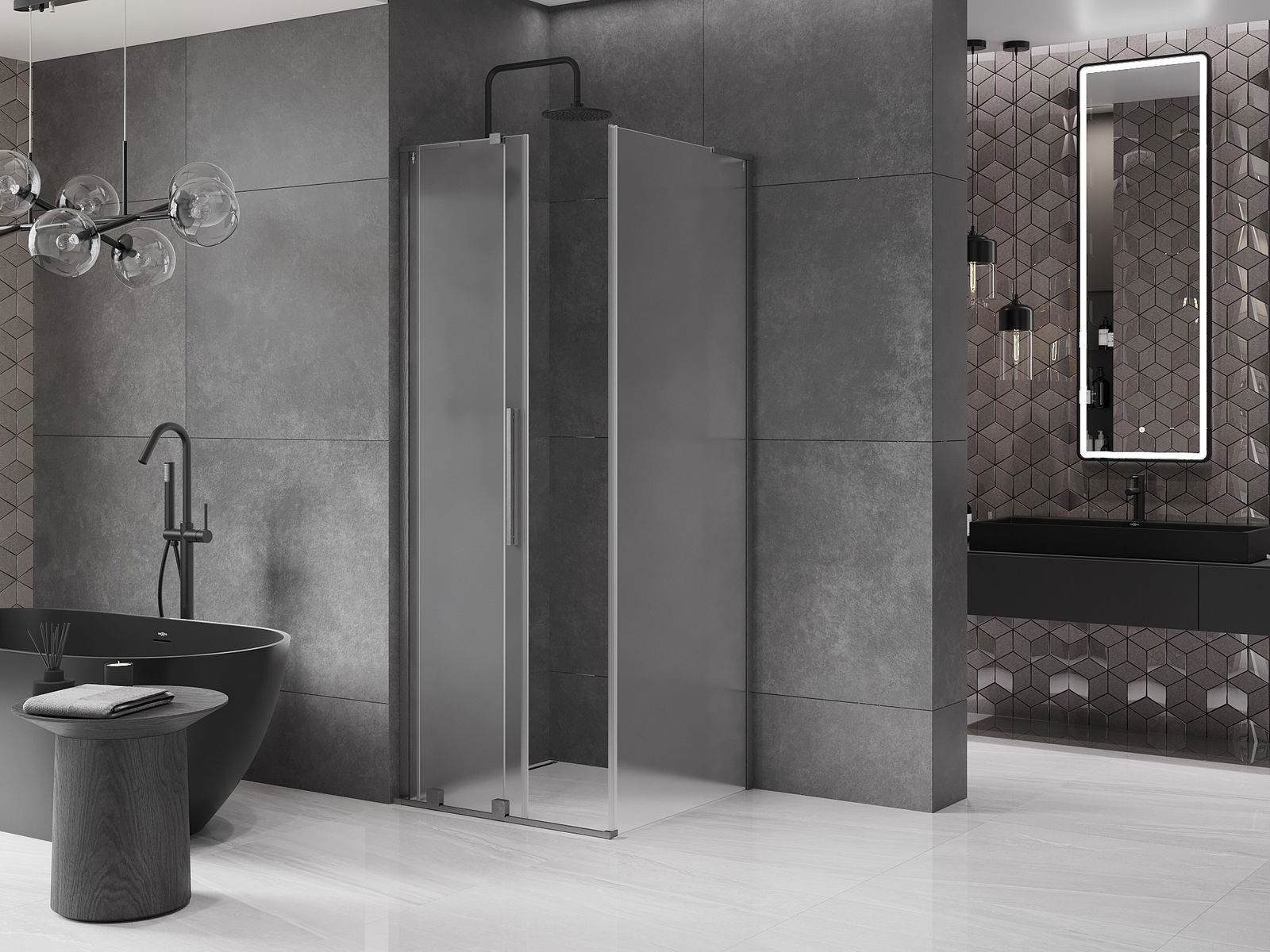 Mânerul practic și confortabil este realizat din oțel inoxidabil. Forma modernă, combinată cu un finisaj asortat cu culoarea profilelor, conferă ansamblului un aspect modern și elegant, subliniind estetica fiecărei băi.