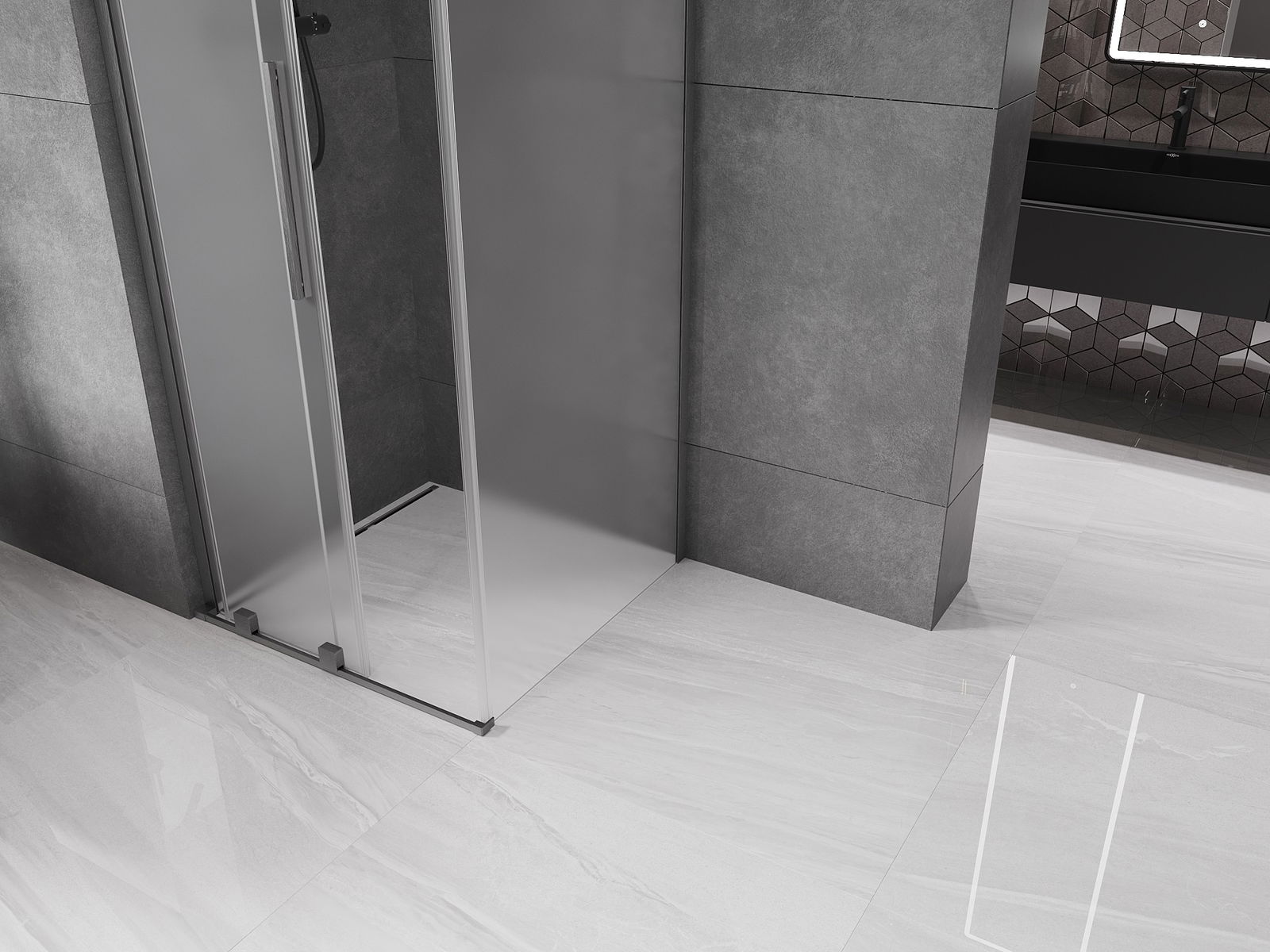 Mexen Velar L cabină de duș glisantă 100 x 100 cm, înghețat, gri pistol periat - 871-100-100-33-66