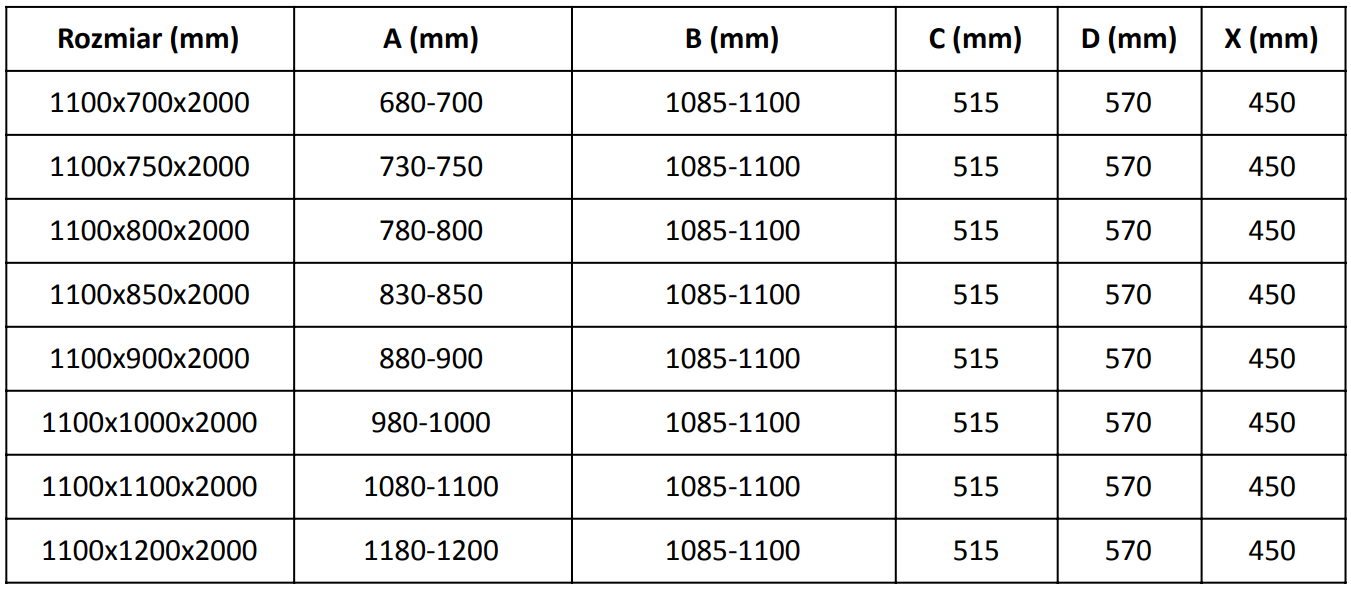 Dimensiune: 110x80 cm (uși 110 cm, perete 80 cm)