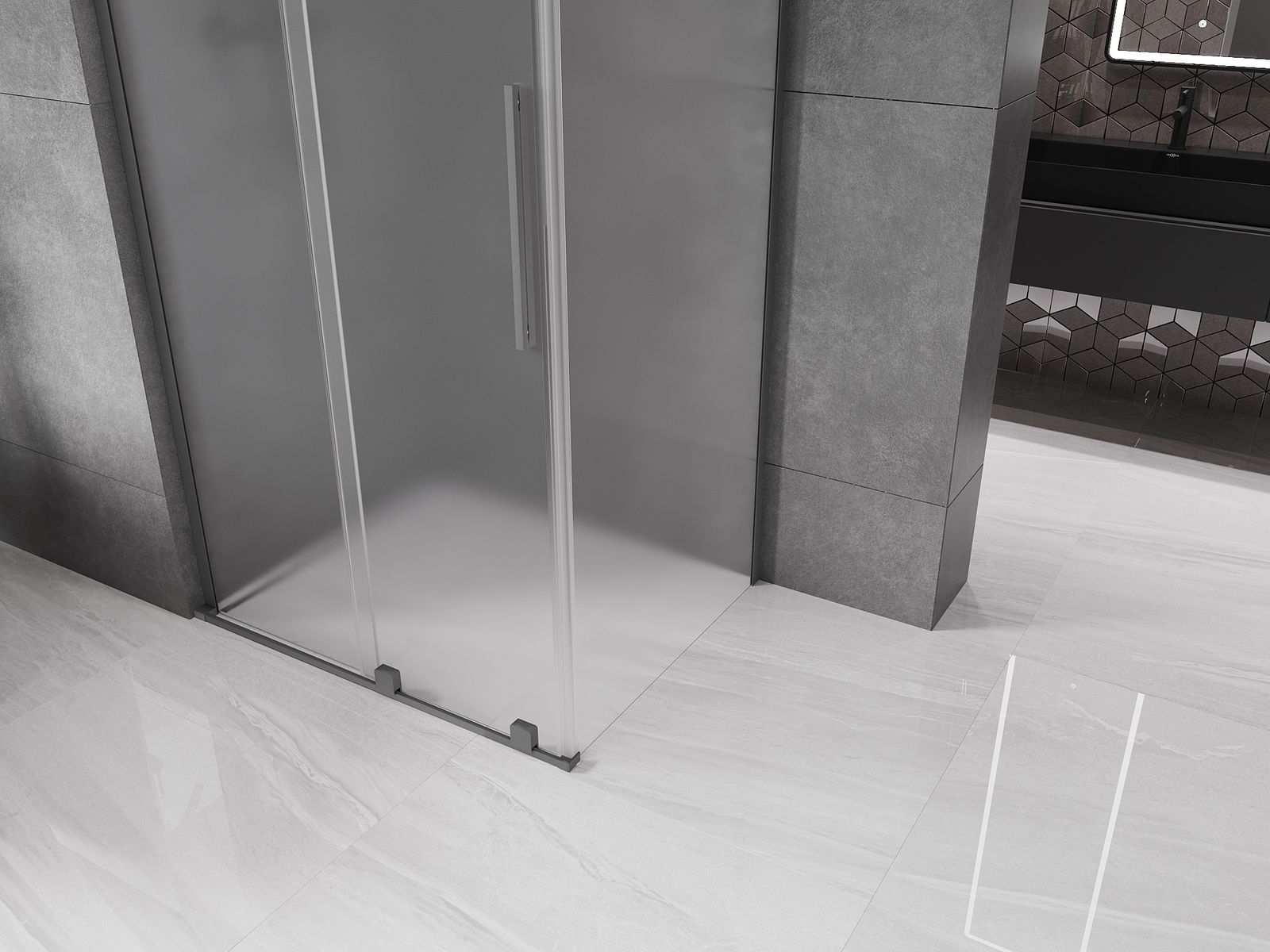 Mexen Velar L cabină de duș glisantă 110 x 80 cm, sticlă sablată, metal gun - 871-110-080-33-95