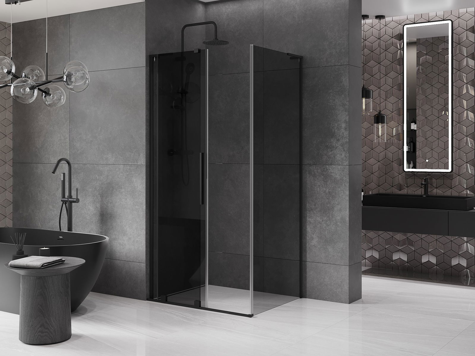 Mexen Velar L cabină de duș glisantă 90 x 80 cm, grafit, negru - 871-090-080-43-70
