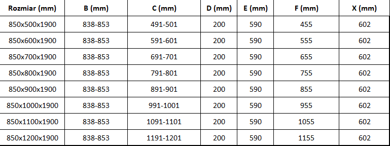 Dimensiune: 85x120 cm (uși 85 cm, panou lateral 120 cm)