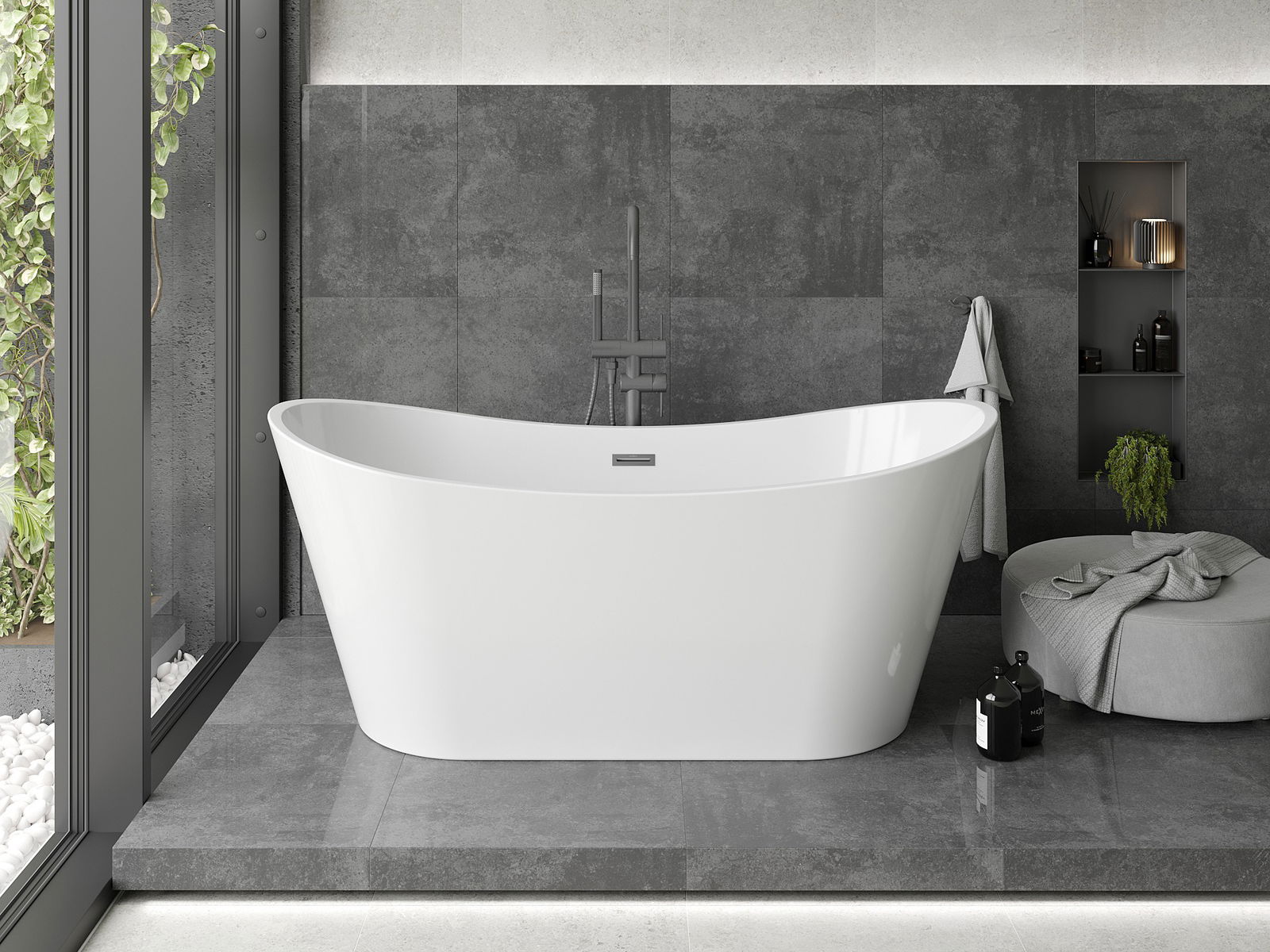 Mexen Montana cadă de baie independentă 150 x 75 cm, albă, cu preaplin gun metal - 52011507500-95
