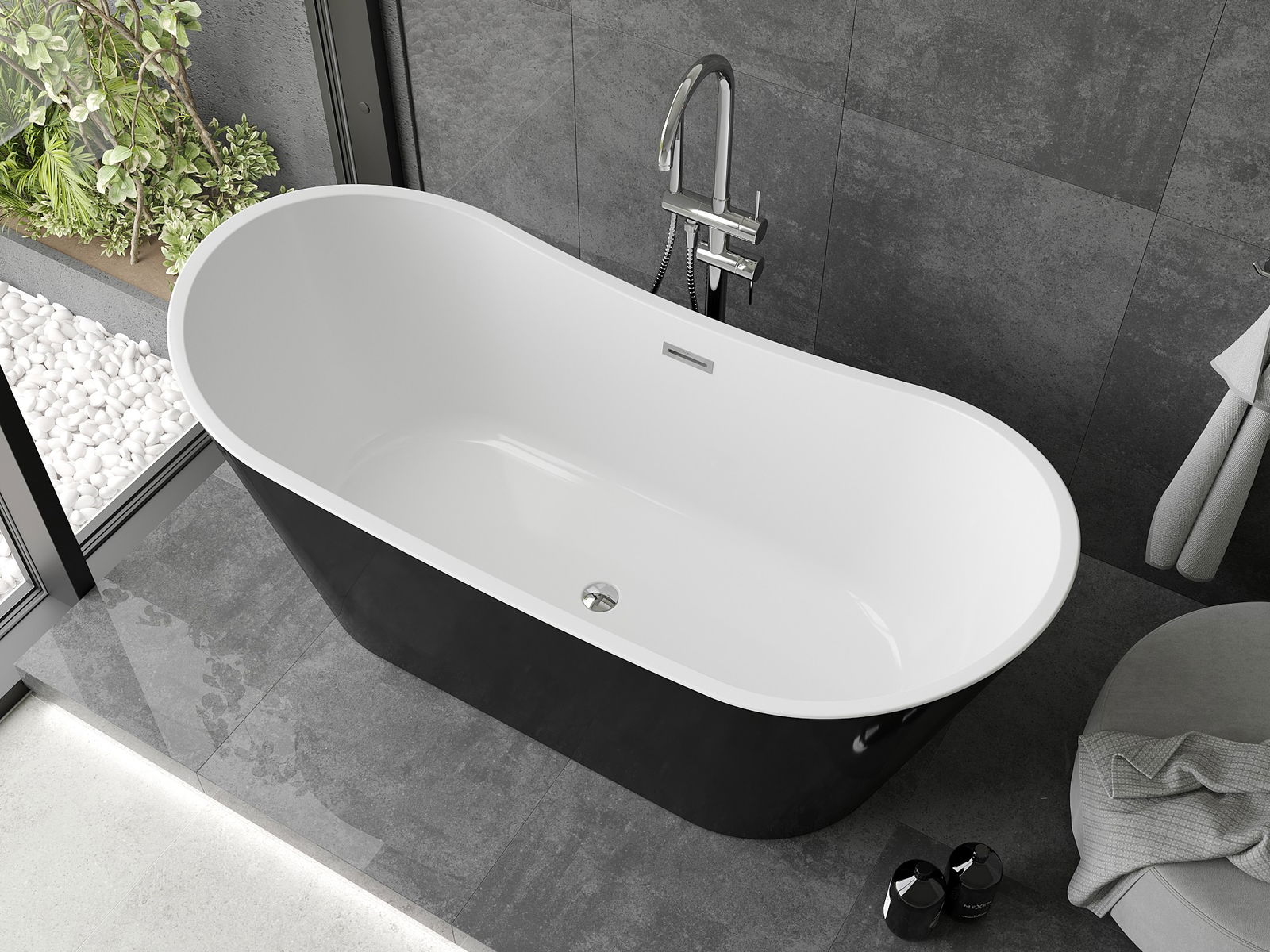 Mexen Montana cadă freestanding 150 x 75 cm, albă/neagră, preaplin cromat - 52011507575-01