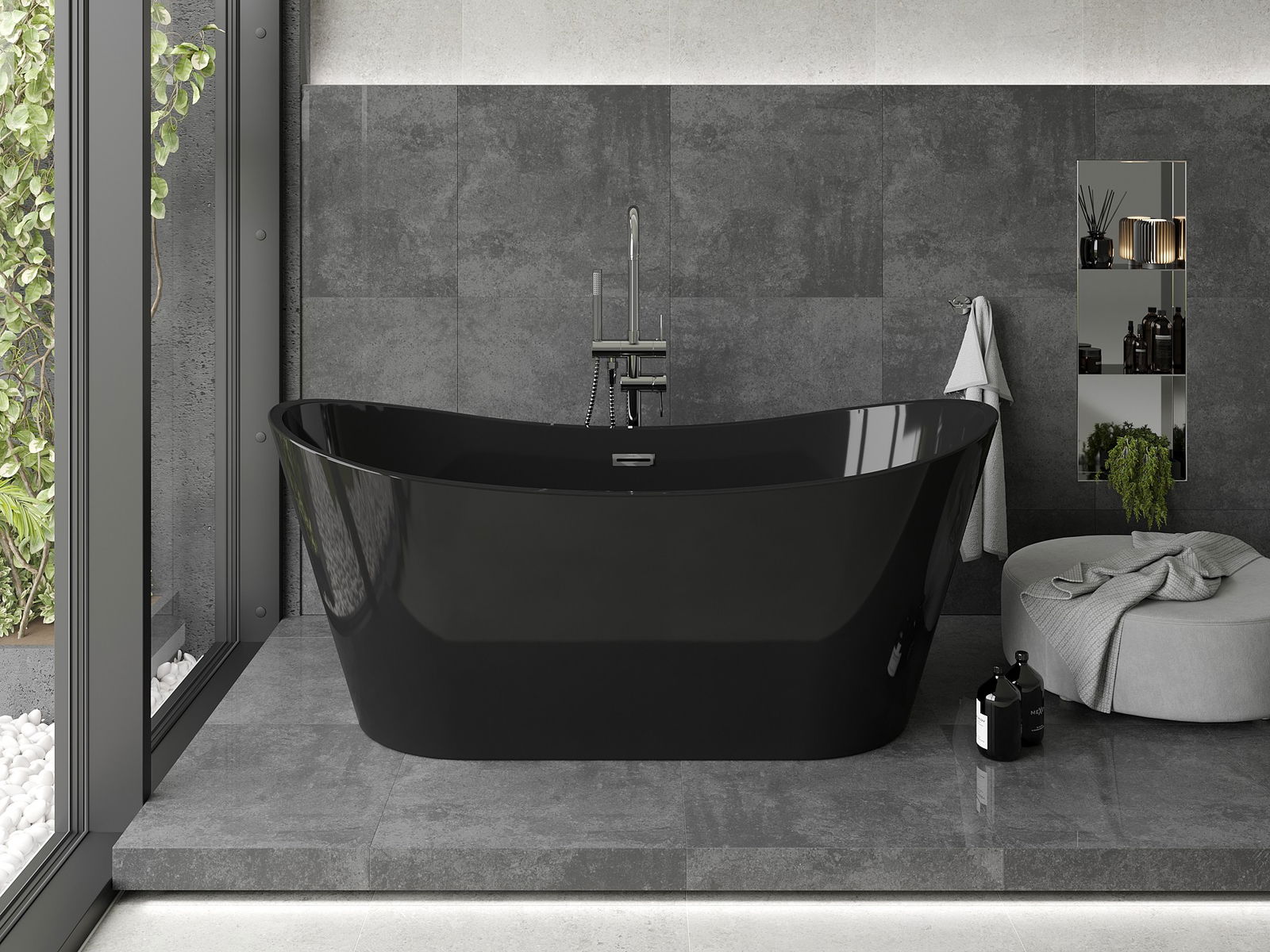 Mexen Montana cadă freestanding 170 x 80 cm, neagră, preaplin cromat - 52011708070-01