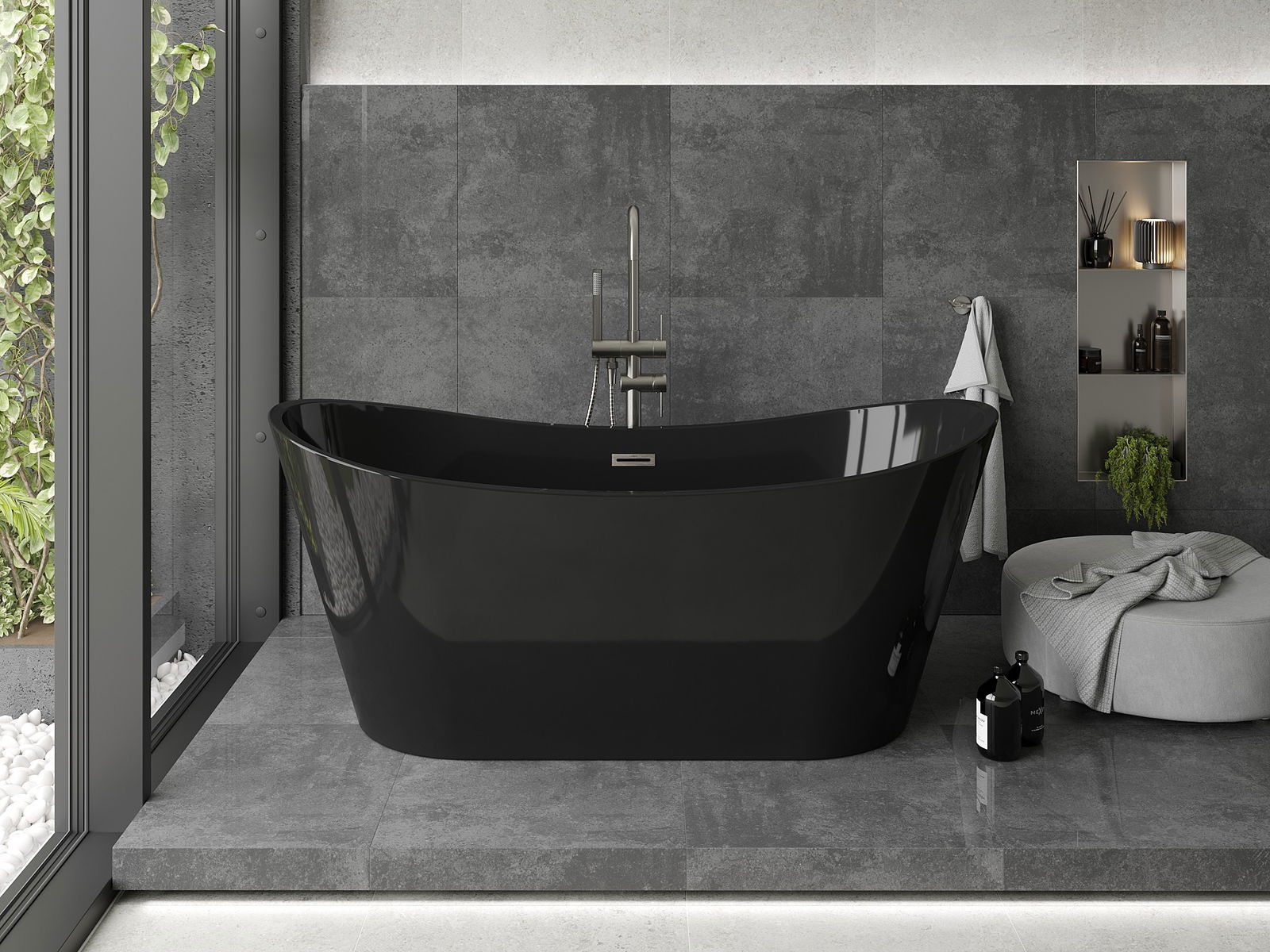 Mexen Montana cadă de baie freestanding 170 x 80 cm, neagră, preaplin nichel periat - 52011708070-97