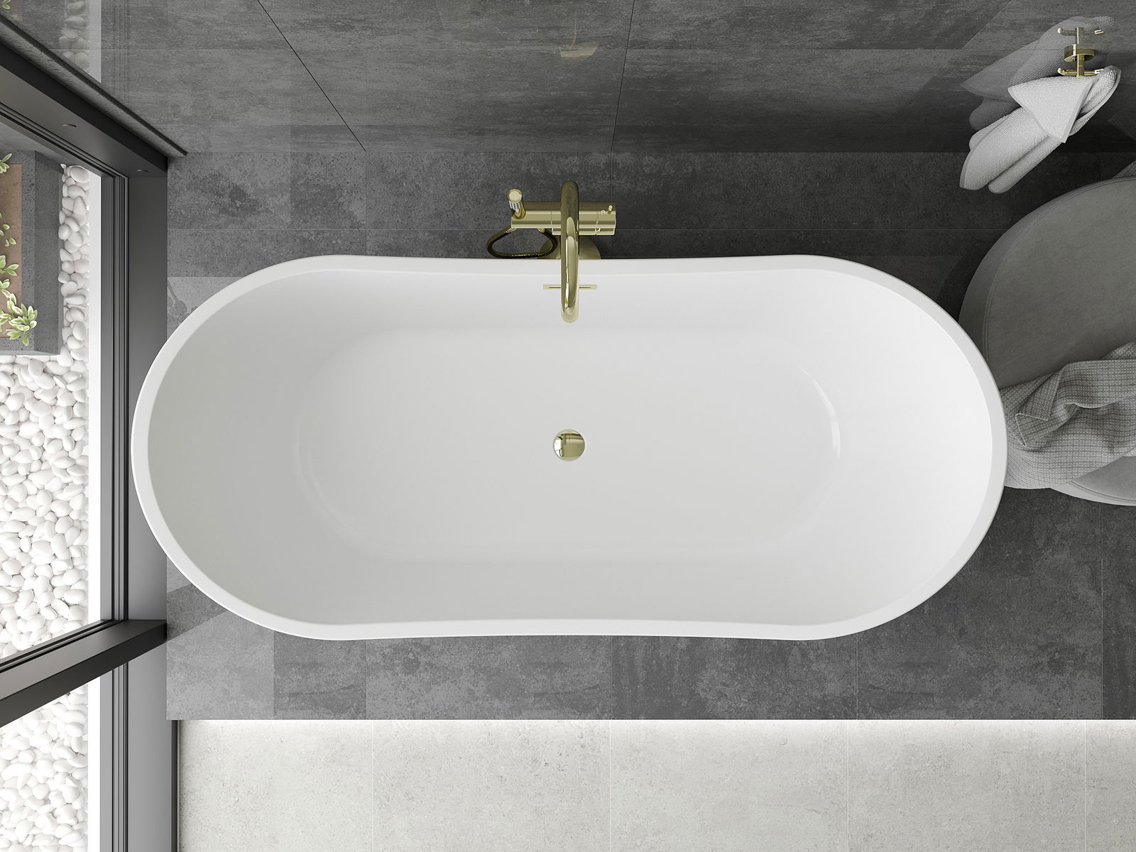 Mexen Montana cadă de sine stătătoare 170 x 80 cm, albă/neagră, preaplin auriu - 52011708075-50